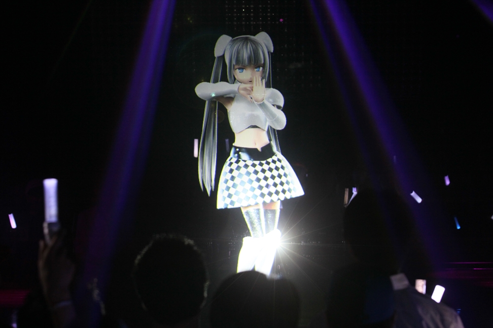 1組目はミス・モノクローム。「ポーカーフェイス」「私だけの物語」そしてキャンペーン応援歌「Never Ending Story」の3曲を熱唱した。ステージ上に登場するとその美しさに会場からは歓声が。生ライブ自体が珍しいため、非常にレアなライブとなった。