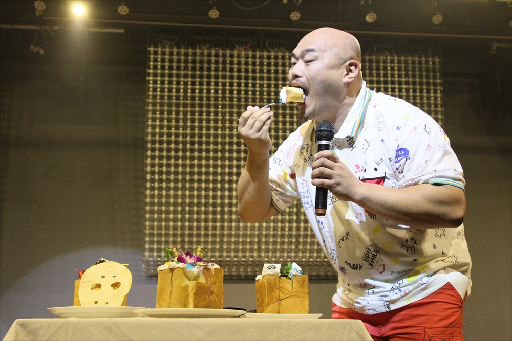 イベント開始早々本日のゲストMC・安田大サーカスのクロちゃんが登場!! 開始直後から持ちネタを披露し、会場を温めた。また当キャンペーン応援団長の「でちゃう」編集部・髭原人さんもトレードマークの赤ふんどしではなく、学ランに身を纏い登壇。そして前回北関東エリアグランプリの秋山なおさんも登場でイベントに花を添えた。