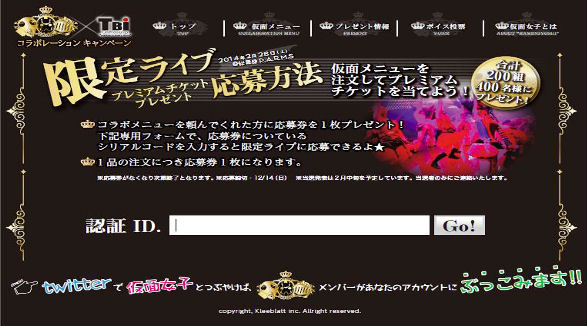 このコラボメニューを注文するとスペシャル限定ライブへの応募券が抽選で200組400名様にプレゼントされる。