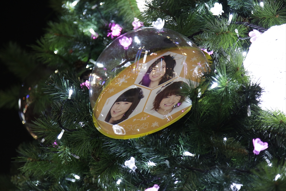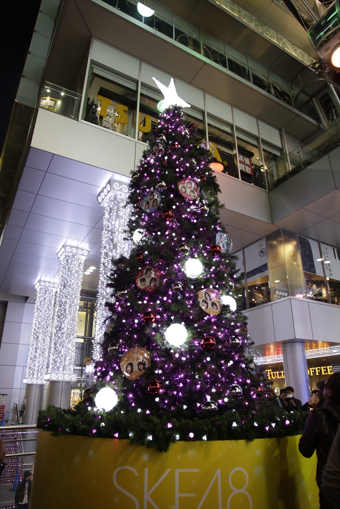 クリスマスツリー点灯式ではSKE48の3人が「メリークリスマス」の掛け声でスイッチを押すと、クリスマスツリーと電飾が一斉に灯り、ツリーにはSKE48のメンバーの顔写真が入ったオーナメントが散りばめられており、3人も感激しきり。