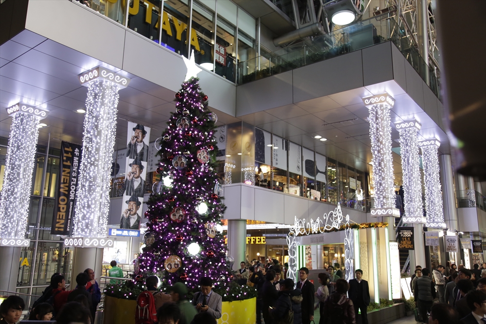 SUNSHINE SAKAEのクリスマスツリーは12月25日(木)まで設置される。