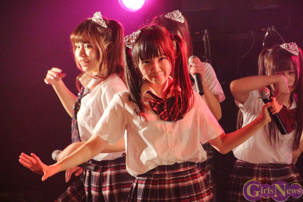 先攻となったアイカレは、一曲目の「NGワード〜キミガスキ〜」から代表曲の「イチゴパフェ」へと熱のこもったステージを見せて客席を一気に盛り上げた。12月13日に有楽町・よみうりホールで行なわれる5周年ワンマンライブを控え、勢いにのるアイカレは、溢れるパワーで客席を煽り、彼女たちのファンのみならず放プリのファンも巻き込んでいった。前半の最後は12月3日に発売される新曲「トゥルーエンド プレイヤー」を披露し、力強いサウンドで存在感をアピールした。