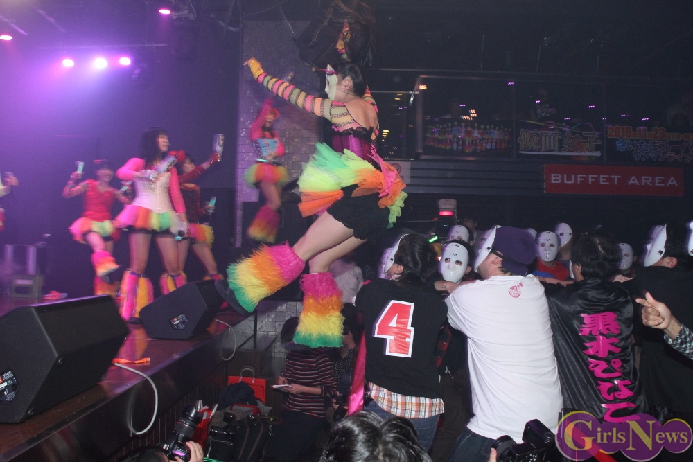 11月25日、最強地下アイドル 仮面女子のライブが秋葉原の常設劇場 P.A.R.M.Sで行われ、「夏だね☆」の楽曲を披露している時に、仮面を付けた男が乱入した。