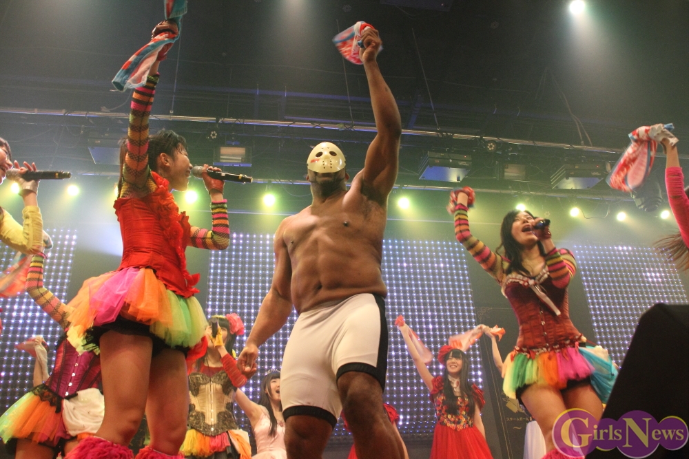仮面女子は2015年1月1日にシングル「元気種」のリリースを控えており、仮面女子のライブを見ていたボブ・サップもその実力に太鼓判。