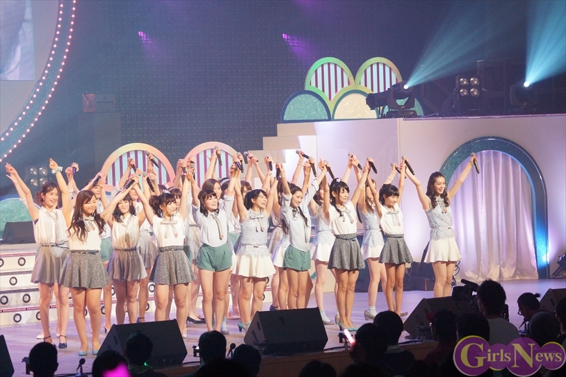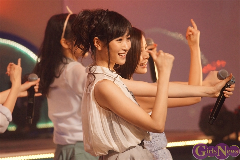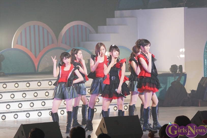 ライブ終盤はアッパーチューンのラッシュで、再び会場を「パーティー」へと変える。「4U」では、外岡えりか・横山ルリカ・朝日奈央・三宅ひとみ・古橋舞悠・関谷真由の6人がキレキレのダンスを披露。「朝日がカメラで抜かれた瞬間やる気を見せていた」(菊地亜美)と思わぬツッコミもあったが、「マイクを持たずにステージに上がることがすごく新鮮で、プレッシャーじゃないですけど、その分ダンス頑張らなきゃと思って頑張りました」(関谷真由)という意気込みで見事に踊りきった。
