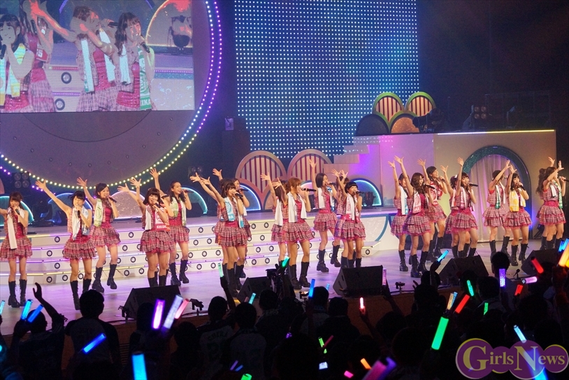 今回のテーマは「パーティー」。夜には菊地亜美さんの卒業ライブも控えていたこともあり、客席の盛り上がりを重視したセットリストとなった。まずは「SHA KA LA KA PARTY」に載せて、ライブ初となる客席からメンバーが登場する。いきなり大きな盛り上がりを見せるかと思いきや、予想外の展開にファンが気付かないというハプニングが発生。
