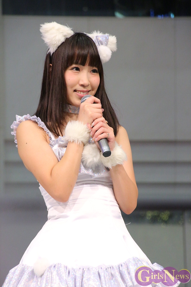 コヒメさんは「噴水広場では360度でしたが、アンフィシアターも180度のいろいろな方向から見られるのでとても緊張します。今は舞台装置をどう活かしていこうかとか皆で話し合っている最中ですが、先輩方に楽しんでもらえるステージが出来るよう一丸になって頑張っていきます。新メンバーが入ってから初めてのワンマンなので、その成長ぶりも楽しみに観に来て。」とそれぞれアピールした。