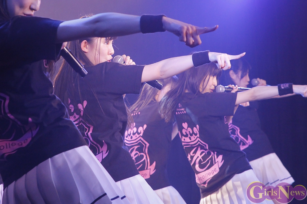 ラストを飾ったのはアイドルカレッジの面々。ステージの隅々まで、いっぱいにメンバーの笑顔が広がる。こちらは演出というよりもストレートに彼女達の素のパフォーマンスを見せるステージとなった。『少女卒業』『いちごパフェ』など定番曲から新曲『トゥルーエンドプレイヤー』までをテンションの落ちる事なく全力で駆け抜ける。