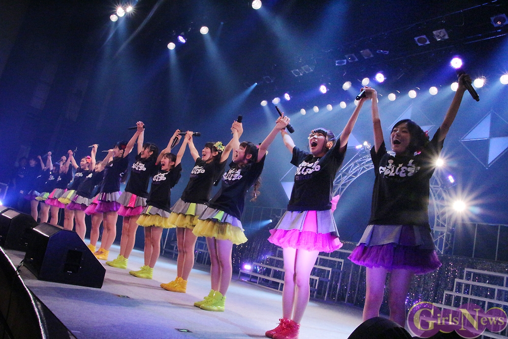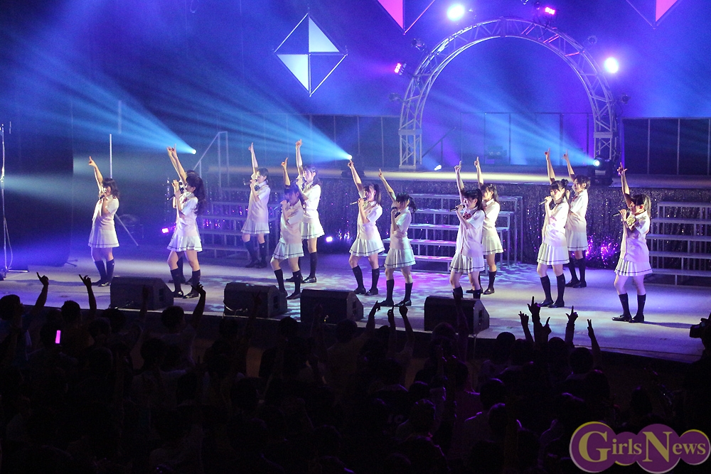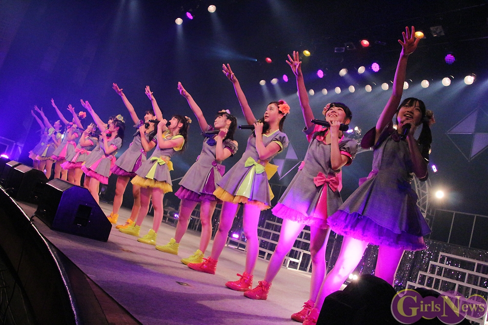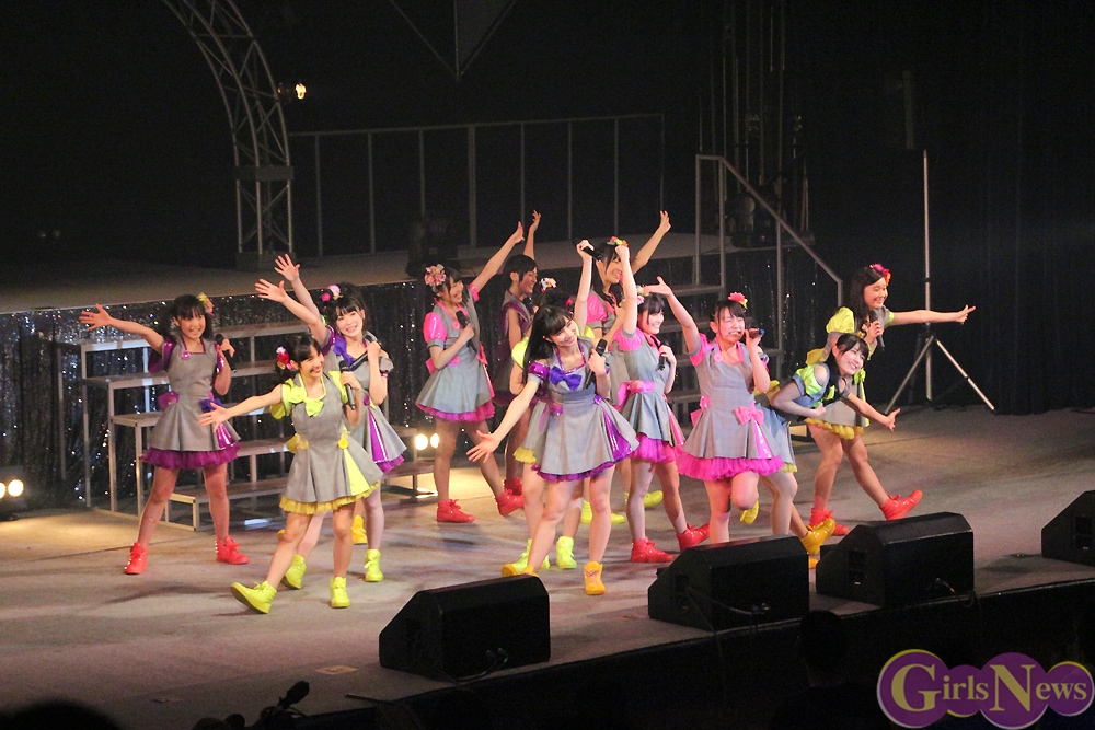 緞帳が降り始めるとメンバーはひざを折り、最後まで客席に手を振り続けた。超満員の客席は、笑顔で彼女たちの頑張りに応え、大きな拍手を送っていた。