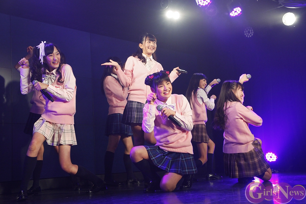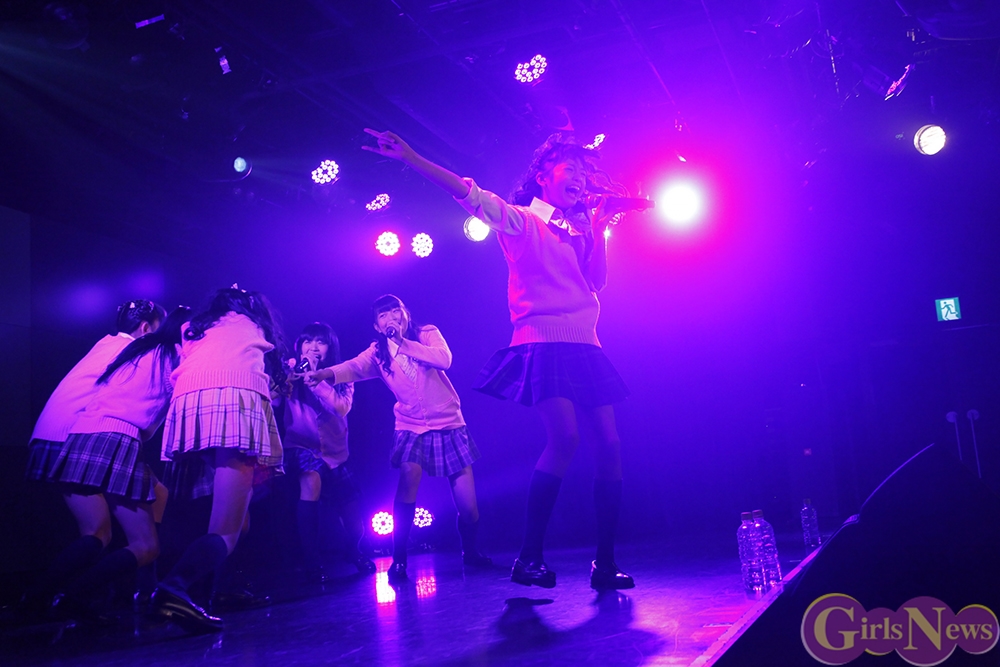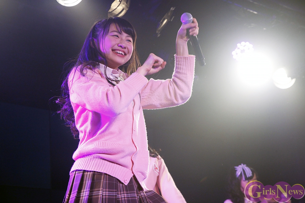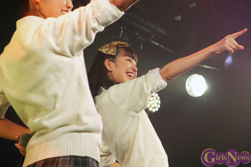 1曲目は今年の新曲「MY ファイティン」。アイドルソングの王道を行くメロディラインに載せ、ピンク色の衣装に身を包んだメンバーがキュートな魅力を振りまき、会場は大きな声援に包まれる。一方、2曲目の「きっと For You!」ではしっとりとした大人の雰囲気を演出。表現の守備範囲の広さで、決勝進出への思いを表現した。