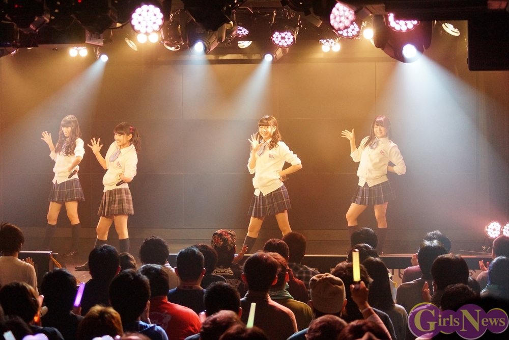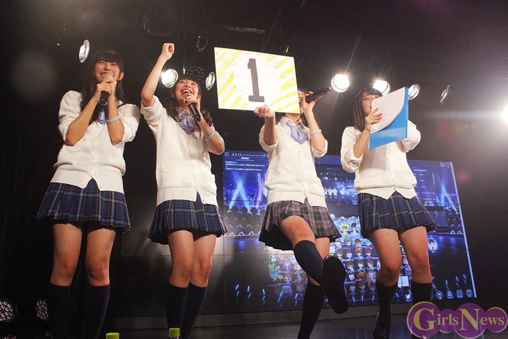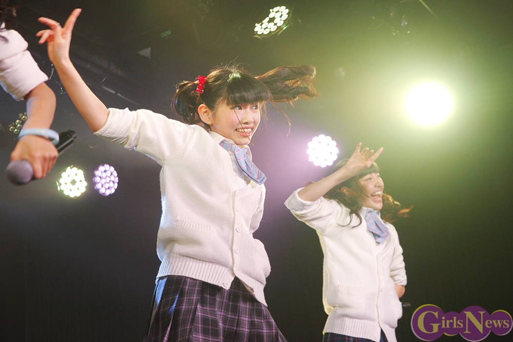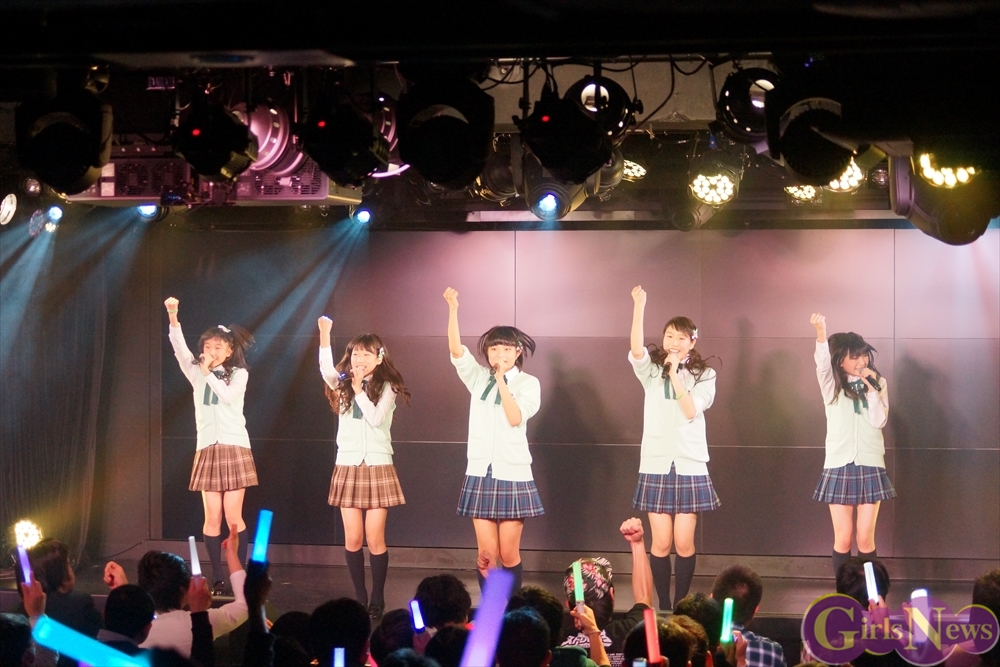 そして、いきなりみにょんは下剋上に向けた「賭け」に出る。1曲目に、SUPER☆GiRLSの名作ミッドチューン「星屑ラブソング」を持ってきたのだ。定石ならば、1曲目はアッパーチューンで会場の盛り上がりを一気に持っていきたいところ。しかし、立ち向かう絶対王者を前に5人は、どれだけ盛り上げられるかという正攻法ではなく、自分たちの今の力を前面に押し出すという形をとった。