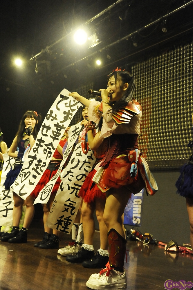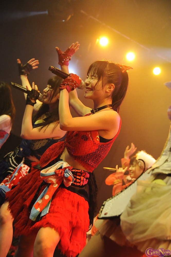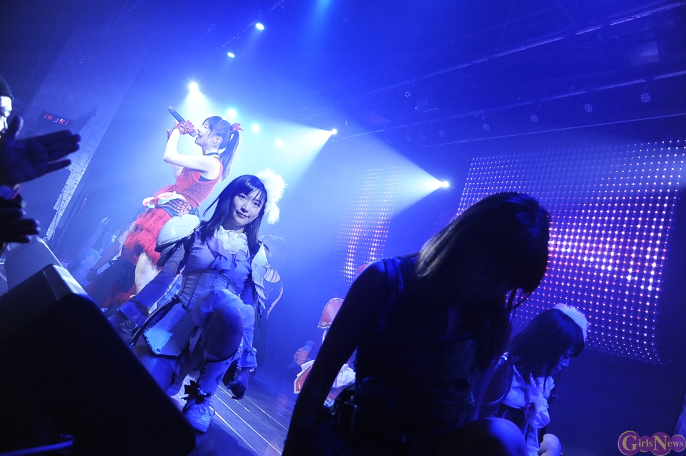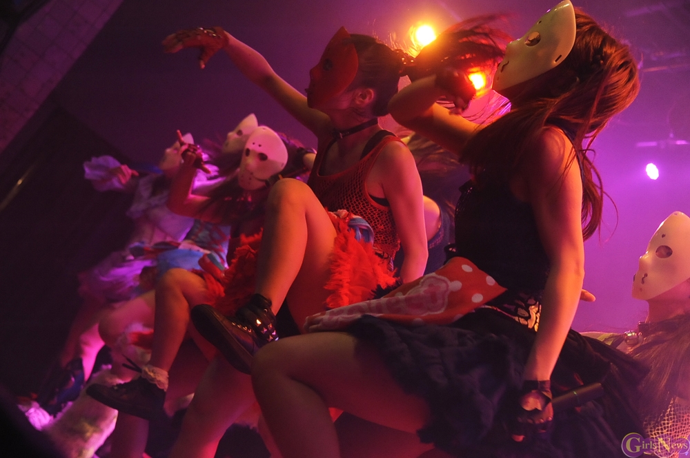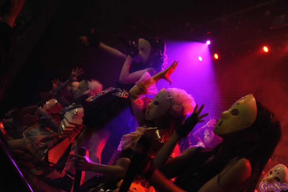 そんな仮面女子の恒例のカウントダウンライブ、最初に「妄想日記」を披露すると、超満員のファンはヒートアップ。 「LOVE is ALL」、自己紹介MCを挟み「アリス・イン・アンダーグラウンド」を披露、「超・アドベンチャー」と続く。