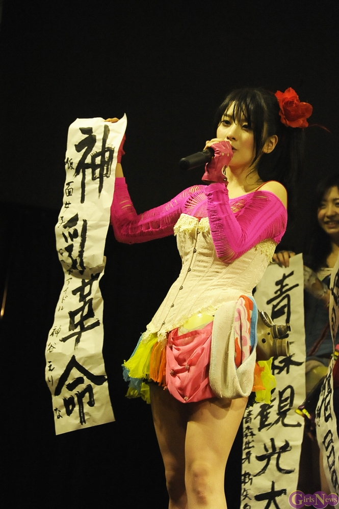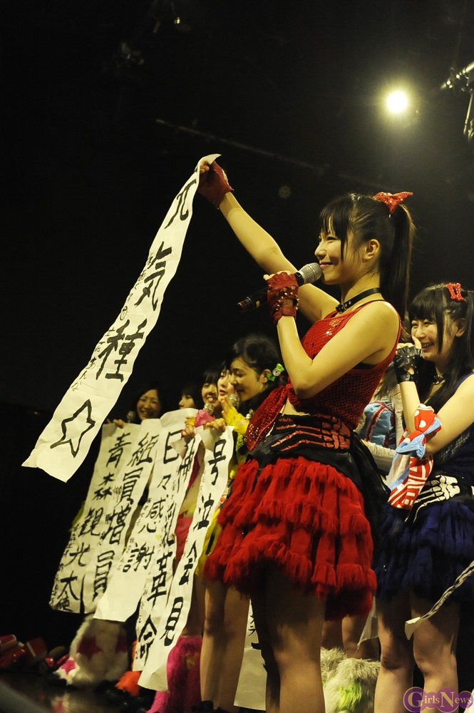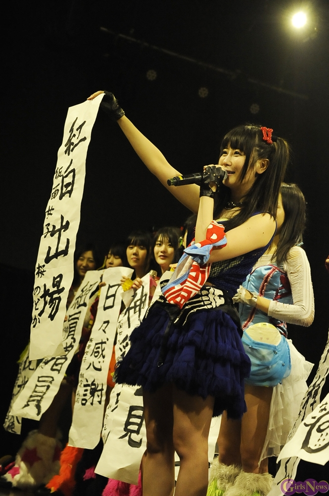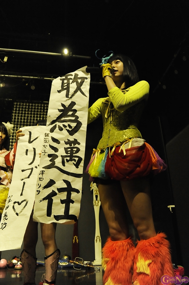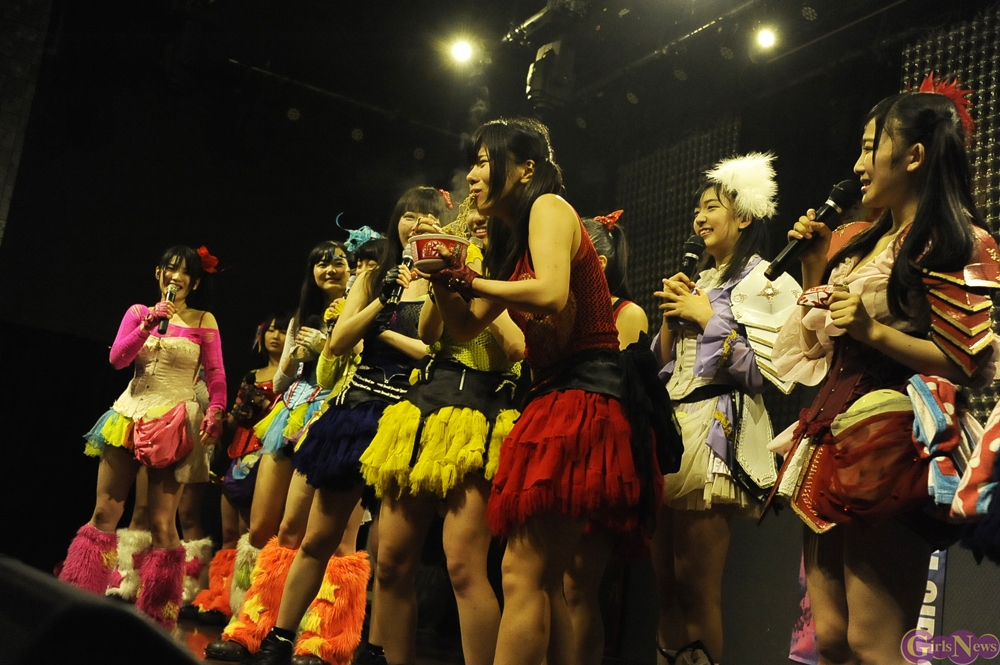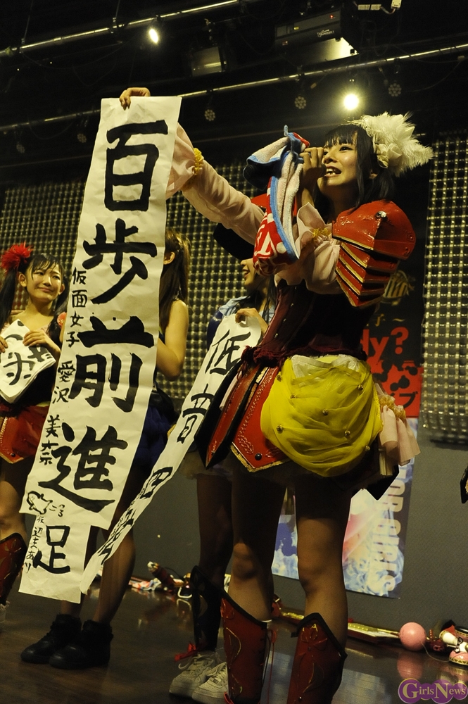 仮面女子のリーダー 桜のどかさんは「大盛り上がりで超満員になって、1年の最後と最初の大切な日に、私たち仮面女子みんなと一緒にすごしたいなと思ってくださる方がこんなにいるんだとすごく嬉しかったです。2015年のカウントダウンは即完で劇場では足りないよというくらいの感じにしたいと思います。」とコメント。