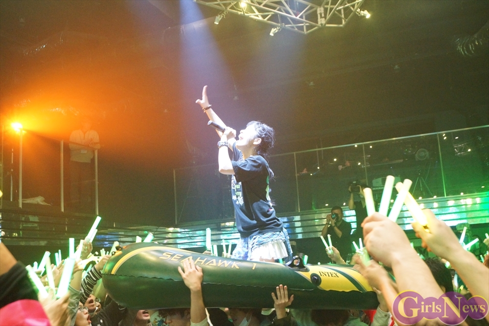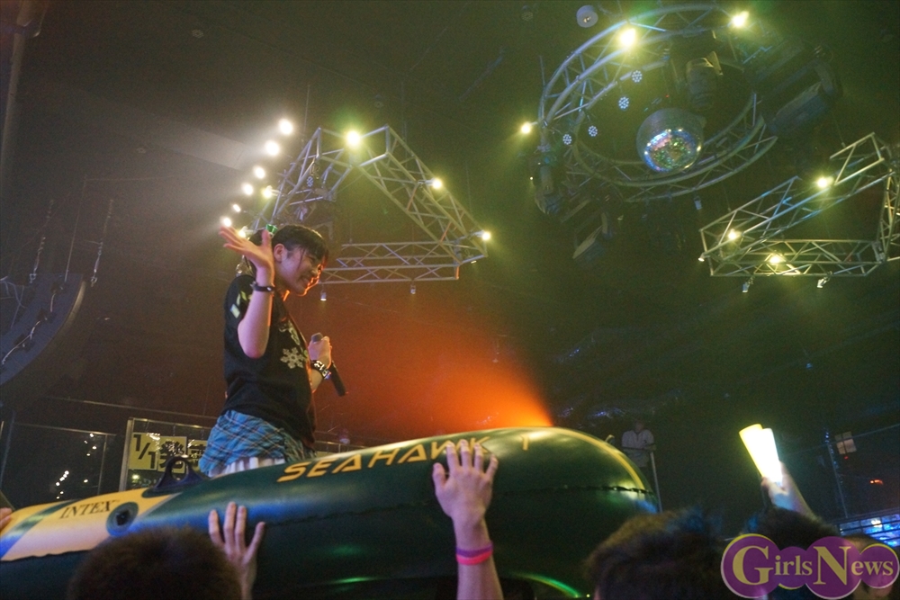 桜雪さんはアリス十番としては初の生誕祭ということで、「夏だね☆」の曲ではゴムボートに乗り、ファンの頭上を大航海する場面もあった。