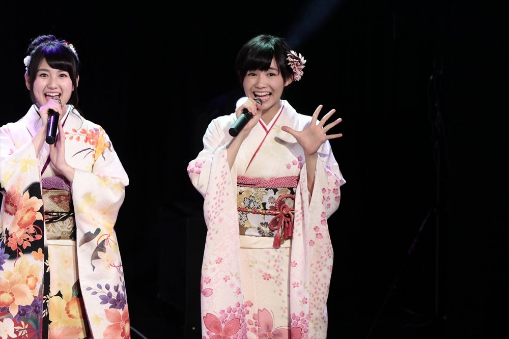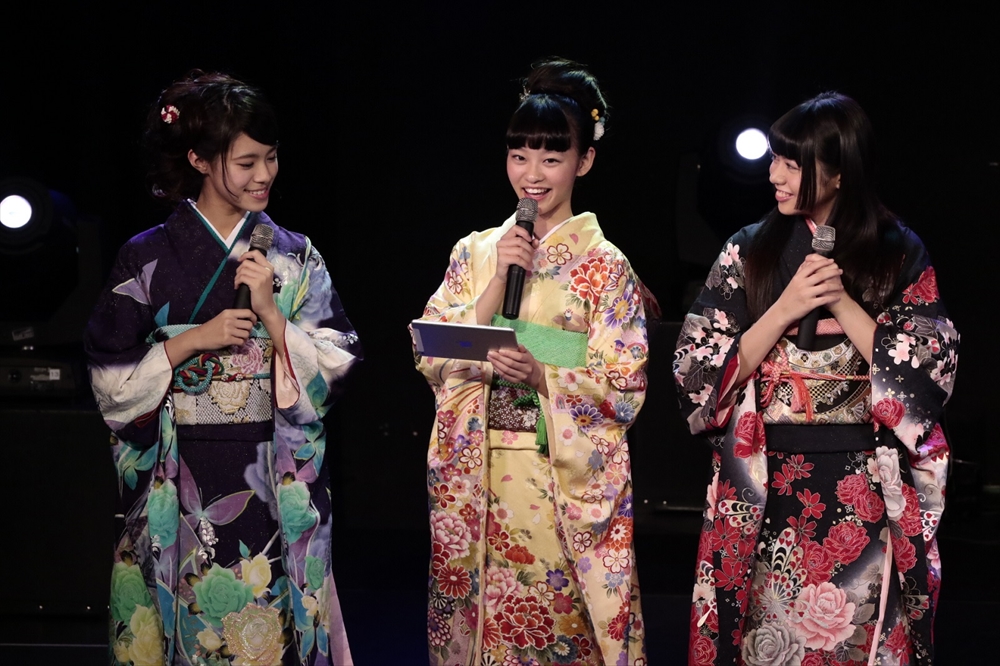 第一部は、新年にふさわしい色艶やかな晴れ着姿でメンバーは登場。それぞれ書き初めにて今年の抱負を力強く宣言したり、事前にファンから募っていたアンケートを元にトーク展開。お題「2015年、TPDに期待することは?」では、「甘栗や、お茶のCMなどに出て欲しい!」に対して、昨年上演されたPLAY×LIVE「1×0」舞台の名台詞でもあった「甘栗!ちょーだい!」(橘二葉)、「大丈夫っちゃ!」(脇あかり)などを披露してPRする場面も。更に前日の12月31日に18歳の誕生日を迎えたリーダーの高嶋菜七に、ファンからハッピーバースディ―ソングがプレゼントされるなど温かいイベントとなった。