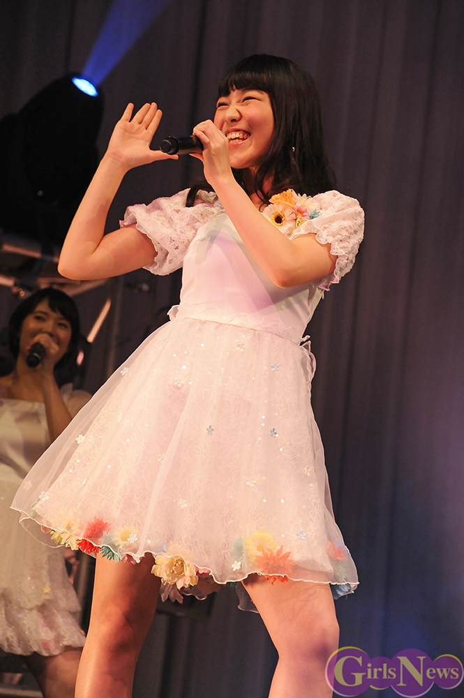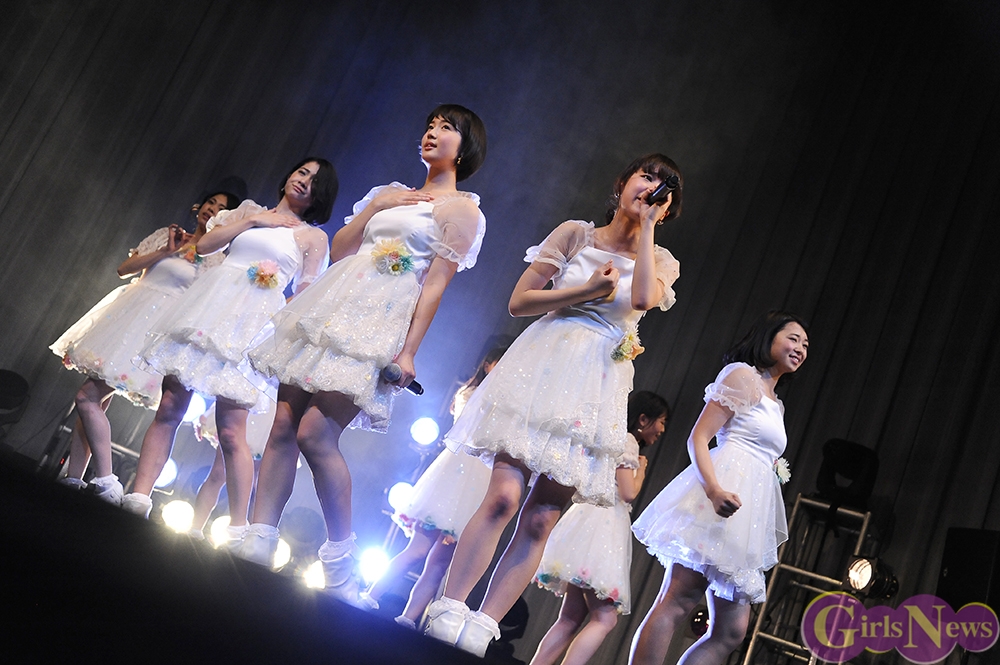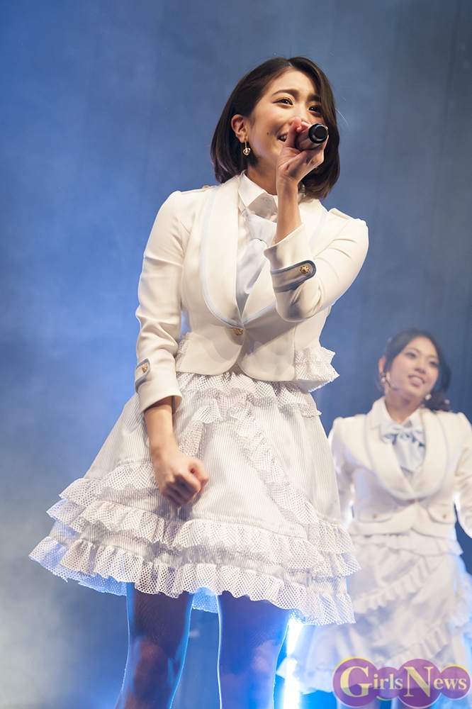 そのまま『駆け抜けろ!青春』など4曲を披露し、自己紹介。白を基調にした新衣装について話が及ぶと小林弥生が「可愛い、可愛い。」とやたらに絡む。実はこの衣装のプロデュースは彼女。会場からの可愛いという声に胸を撫で下ろした様子であった。