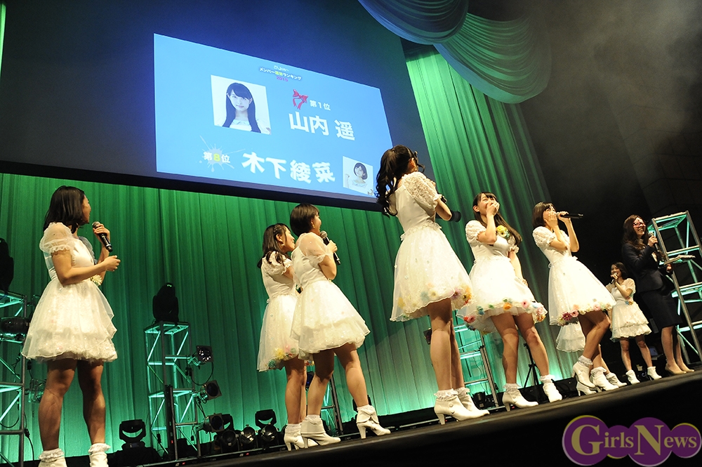 7位・新原聖生、6位・野田真実、5位小林弥生と最下位8位を残したまま発表されるメンバー。4位・長谷川怜華、3位・京極友香、2位・西園みすずと発表されると、残すは木下綾菜と山内遥。
