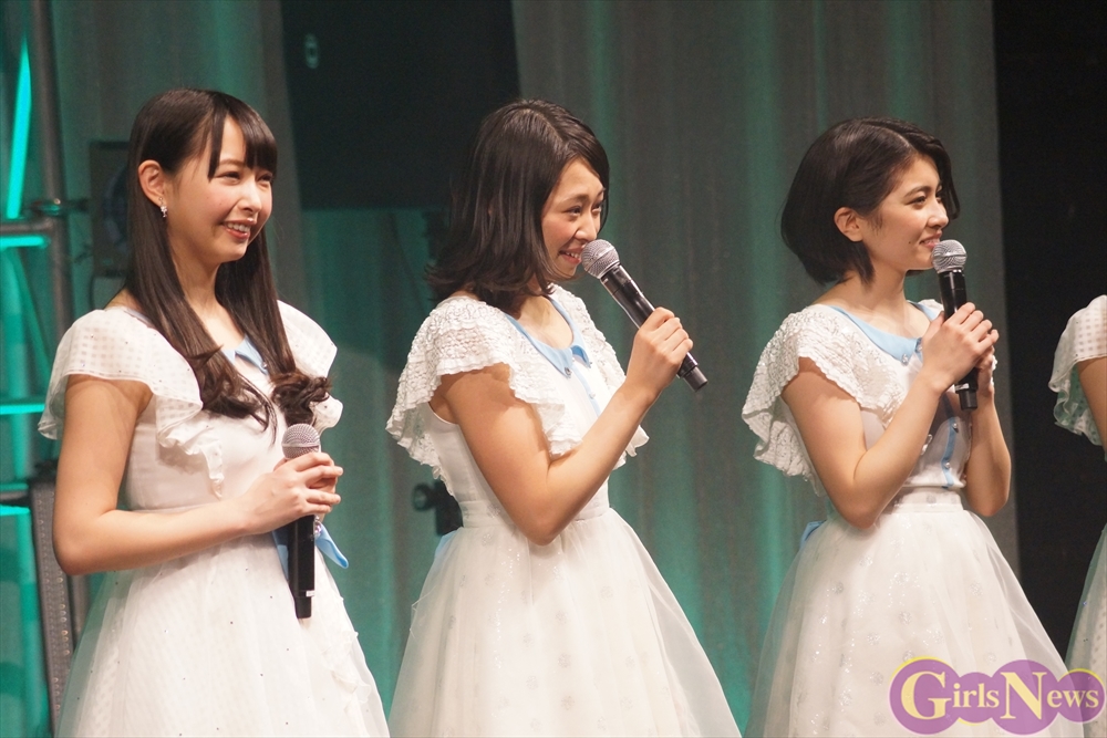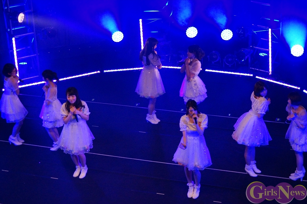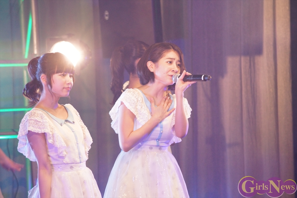 メンバーが合流すると京極友香から卒業の挨拶。上手くこの場では表現出来ないと、事前に書いてきた手紙を涙を交えながら読み上げる。