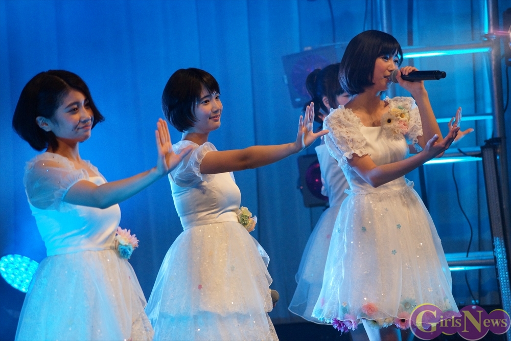 明日から進む別れ道を共に噛み締めて、そして『キスをください』からはさんみゅ~全員がステージで歌う。人一倍大きく踊る京極友香の表情は明るく『みんなの太陽』まで一息に4曲を披露した。