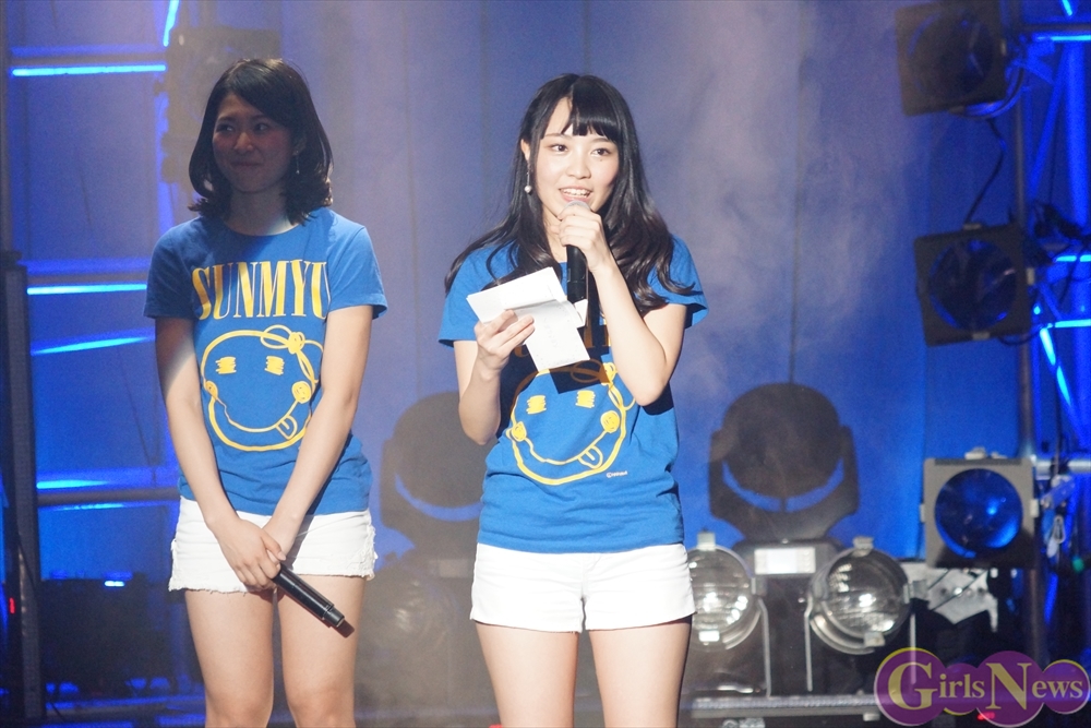 最初のMCでは西園みすずが滑らかなトークで自己紹介に行こうとすると長谷川怜華から「さんみゅ~ですって挨拶しよっか?」と全員の挨拶が抜けたとつっこみ。会場から笑いが起こると「あらためまして…。」と明るく元気に爽やかに「私達が純白アイドルさんみゅ~です!」と気持ちよく挨拶する。
