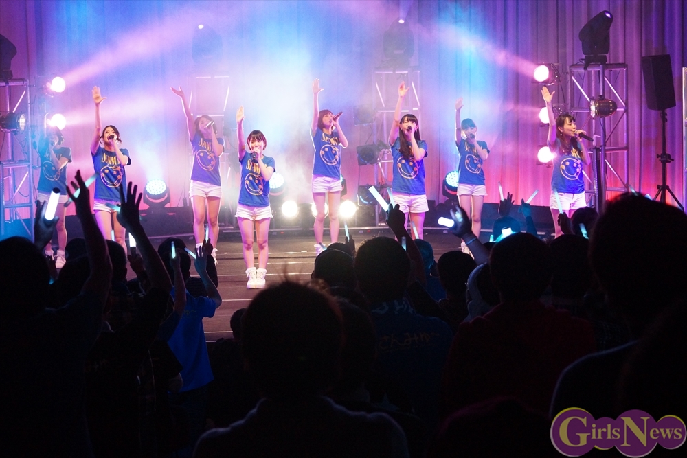 それが終わると「8人でやり残した事がある。」とアカペラでのコーラスを披露する。何度も本番前に中止になるなど悔しい経験を超え、ここで最後にリベンジ。入念にチューニングを終えた後はさんみゅ~3rdシングルの『夏祭り』を振り付きで歌う。ベース、パーカッションも上手にこなし会場からは拍手。
