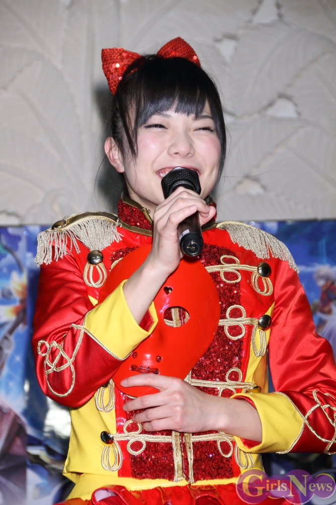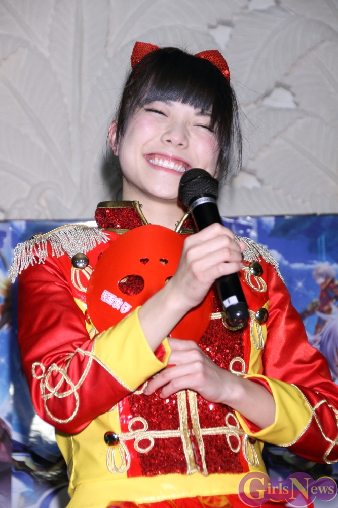 仮面女子のリーダー・桜のどかさんは「私たちのCD“元気種”にサインをさせていただいて、プレゼントをさせていただいたり、ゲームの方に私たちの衣装や武器が登場したり、タイアップ曲が登場するかもしれませんので、是非是非ご参加よろしくお願いします。楽しみにしておいてください。」とアピールしていた。
