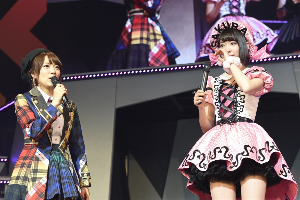 アンコール後、入山杏奈が挨拶し『ここがロドスだ、ここで跳べ!』を披露。続いては『彼女』を宮脇咲良がソロで歌う。ピンクの衣装が可愛くバックダンサーにはHKT48三期生の栗原紗英、荒巻美咲、山内祐奈、外薗葉月が盛り上げる。対照的に黒のドレスで現れた柏木由紀は『よわむしけむし』をしっとりと歌う。