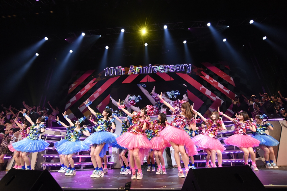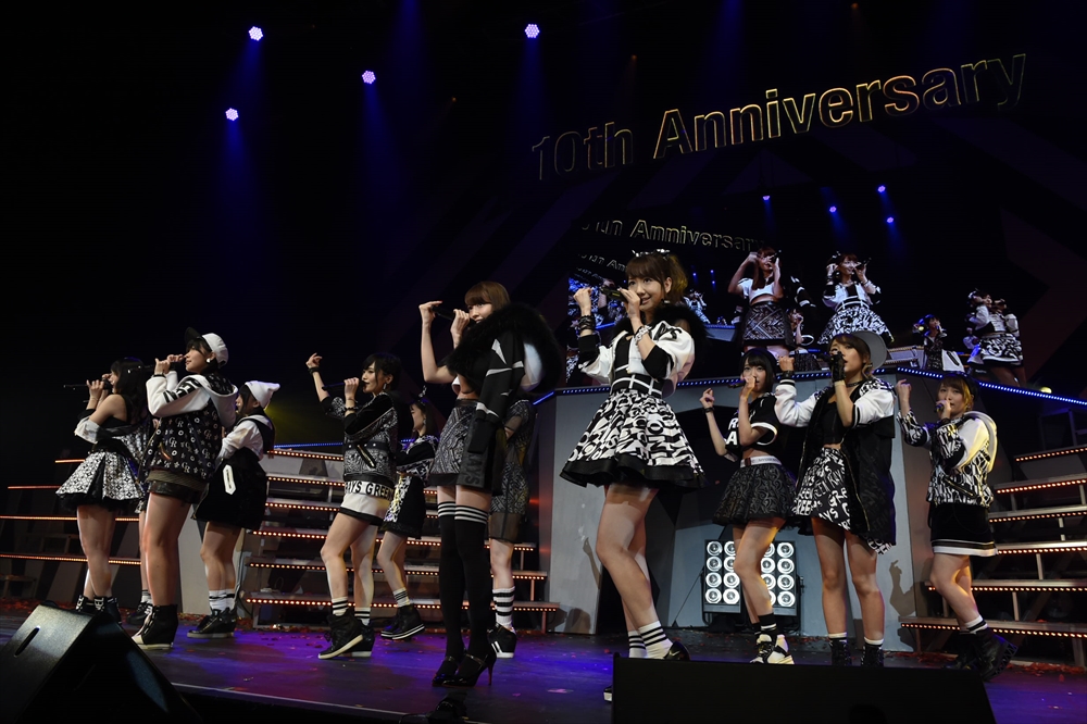 いよいよベスト10の発表は前年1位の『清純フィロソフィー』から。小嶋真子、西野未姫、岡田奈々と峯岸チーム4と呼ばれる面々が爽やかにパフォーマンスする。対照的に松村香織、須田亜香里が騒がしく『ここで一発』でガラっと雰囲気を変えると、続いて登場した『アイスのくちづけ』ではAKB48、12期メンバーがステージに集まる。