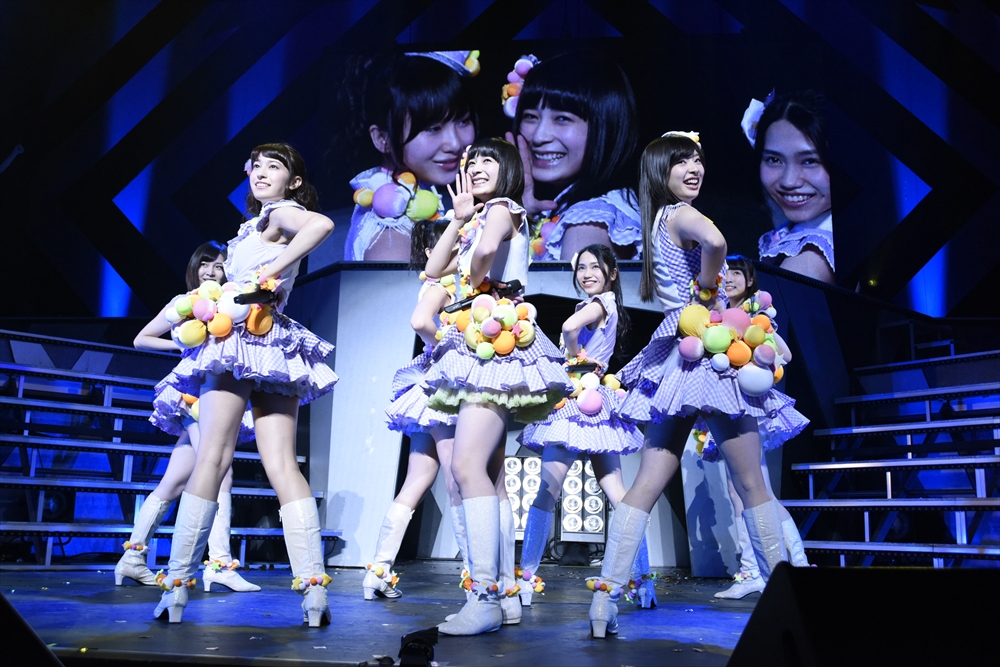 続く『この涙を君に捧ぐ』をアニメ「AKB0048」ユニットNO NAME。渡辺麻友、岩田華怜などが思い出の青い衣装に身を包む。そして『夏の前』を華やかにHKT48チームKⅣが熱唱。