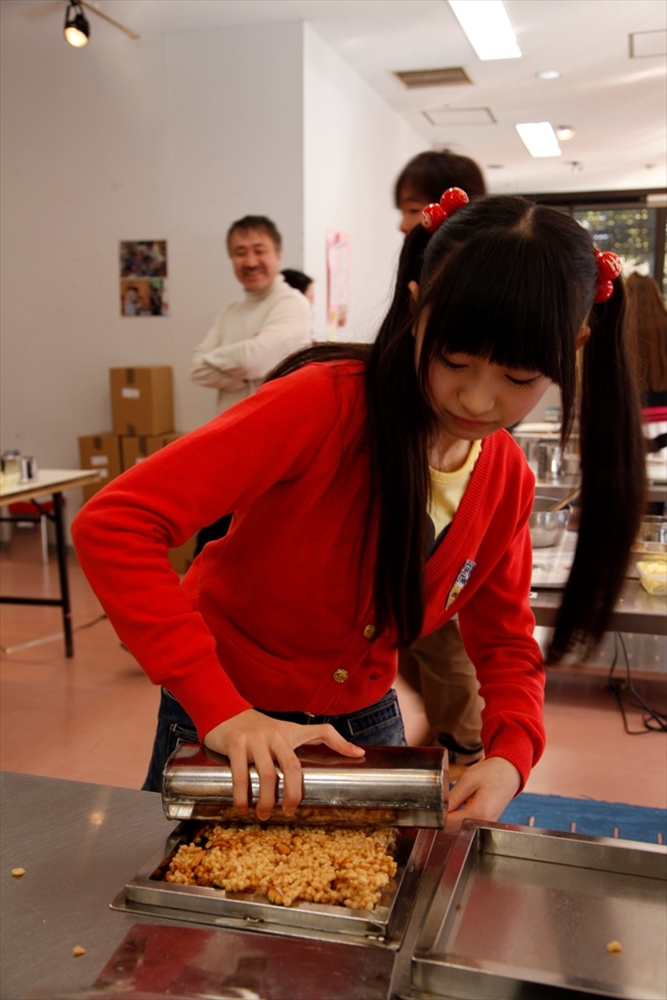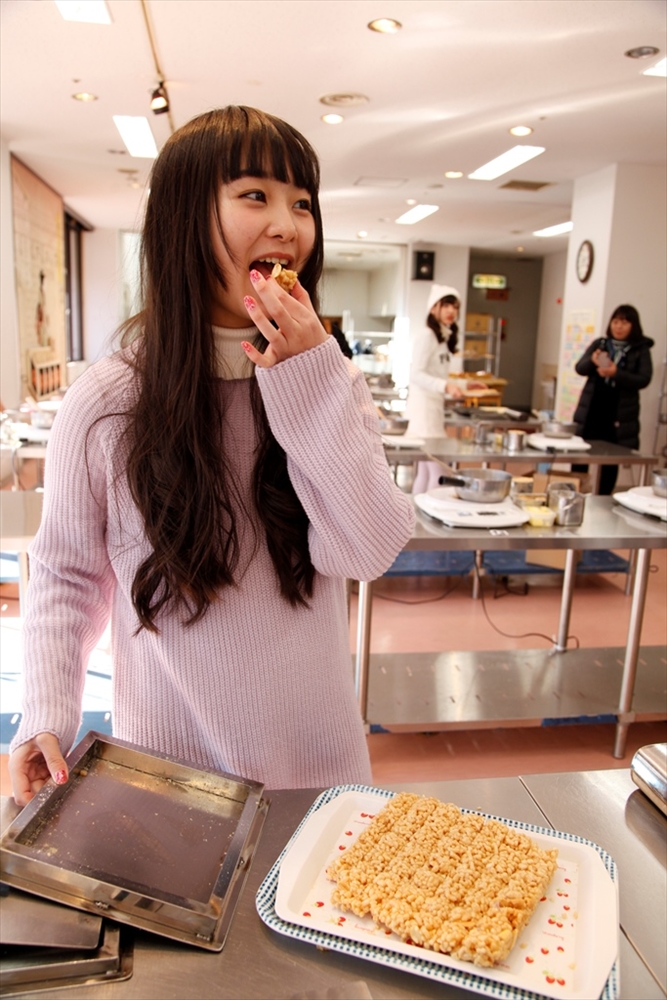 「今日は朝テンションが低くて、人見知りだからしゃべれなかったんですけど、雷おこし作るときにテンション上がって、すごく楽しかったです」(緒方真優)