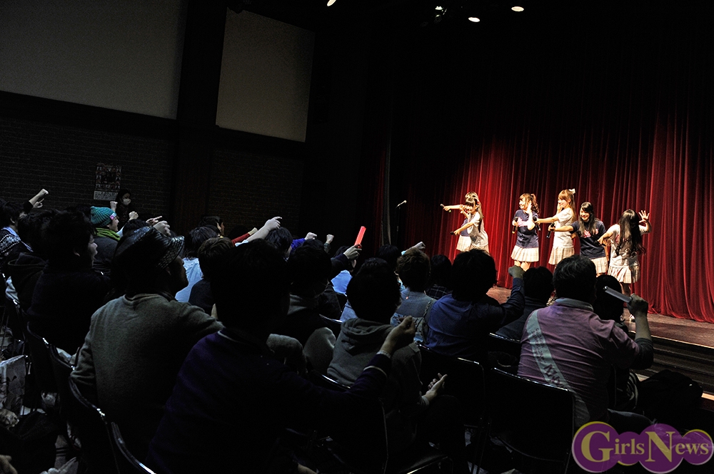 ファンから寄せられた質問に応えるQ&Aコーナーでステージはスタート。浅草に因んだ「もんじゃの好きなトッピングは?」という質問では、お餅好きだという田尻あやめさんがこだわりを語る。「私、お餅は中に入れない人なの。お餅はお餅で焼いて、お餅で食べるの。もんじゃを食べながらお餅をはさむ、これが私流なんです」という自己流の食べ方に、メンバーからは「トッピングというよりお餅だね」というツッコミが入った。また、緒方真優さんと長谷川愛里さんはもんじゃを食べたことが無いという。もんじゃ作りが上手いと評判のリーダー・高橋優里花さんの引率で、6人のもんじゃパーティーが開かれる日も近そうだ。