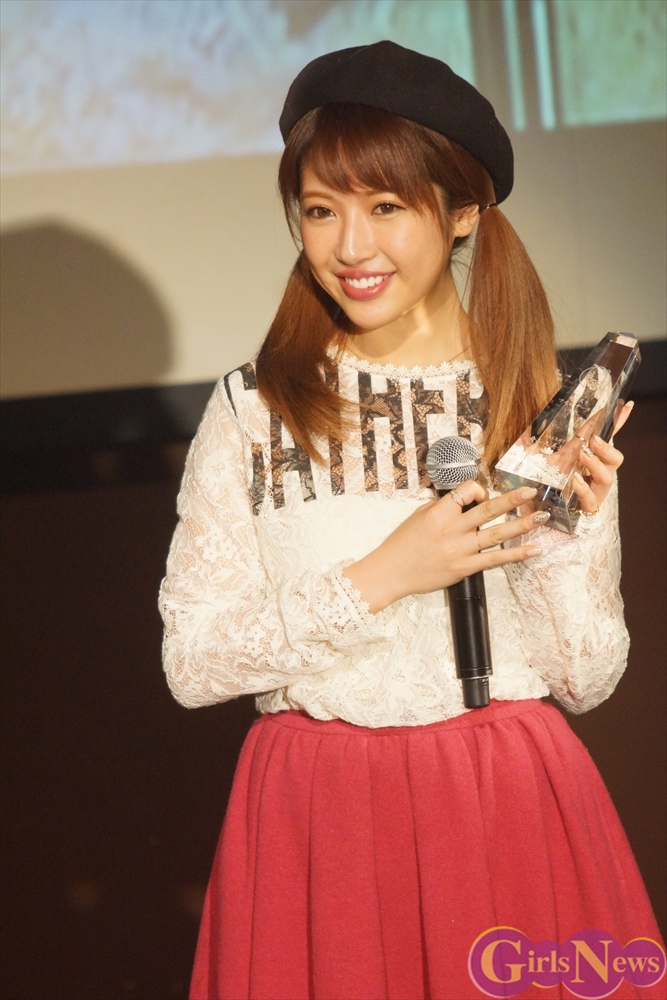 そして、タレント部門で授賞した、くみっきーの愛称で人気の舟山久美子さんは大人ツインテール姿で登場し、「すごい嬉しいです! ありがとうございます!」と満面の笑みでトロフィーを受け取り、「会場の皆さんに“ナイスツインテール”と言ってもらえてすごい嬉しいです。」と喜びを爆発させていた。