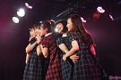 ラスト『はっちゃけセンセーション』では2番に入ると、かっこいいポーズで静止したまま森詩織が自分のパートの歌を忘れる。フラフラになりながら復帰すると会場も楽しげな笑い。その流れもあり一体感のある盛り上がりでライブは終わるのだが、終了後開口一番「ホントにごめんなさい!!」と森詩織。「泣きそう、今ー!」と震える。
