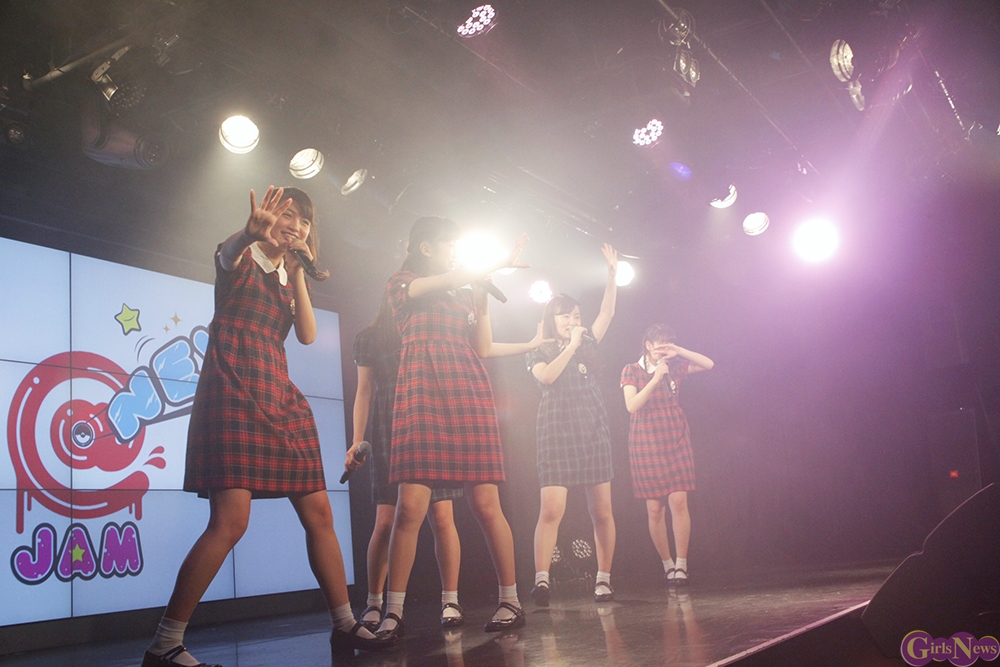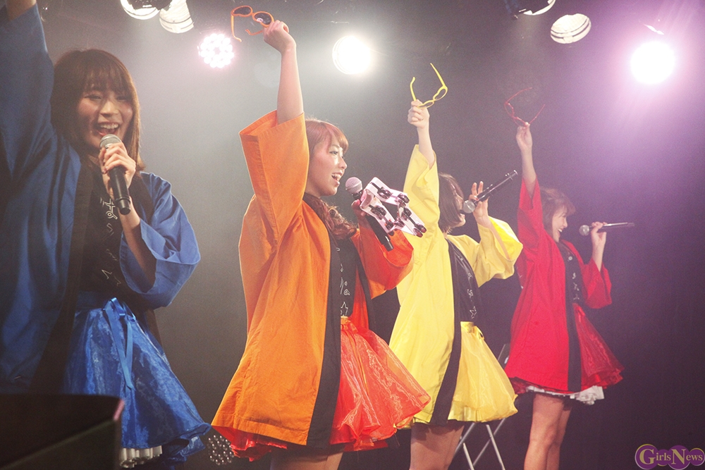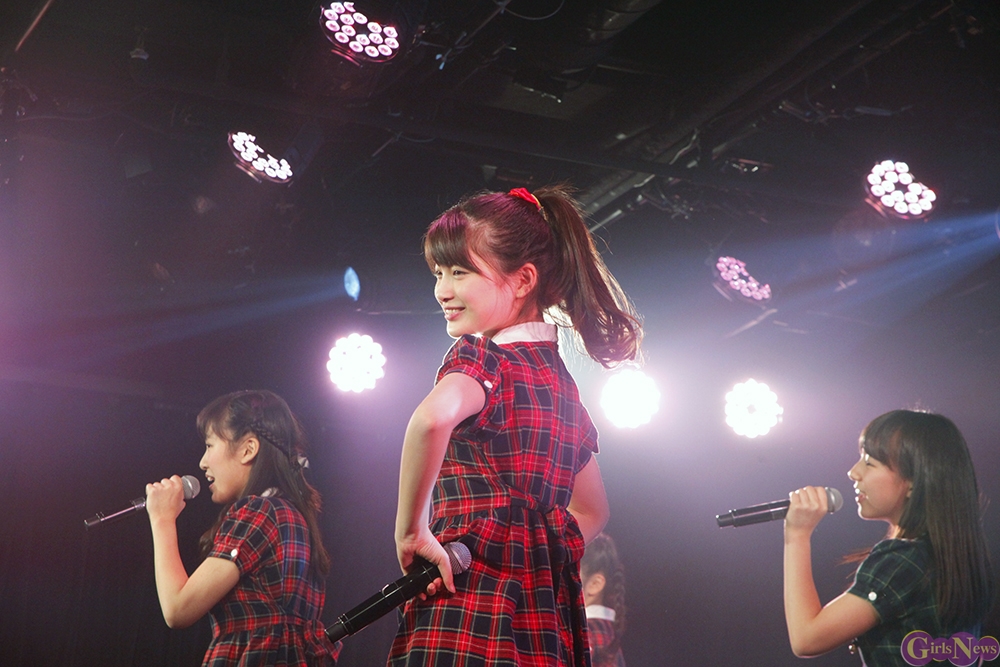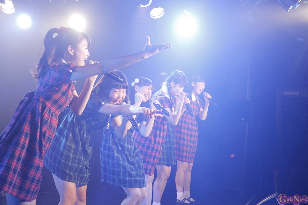 今回は最年長メンバーの門前亜里が欠席(この後の二部には出席)していたものの、その世界観を十分に魅せる。一曲目アイドリング!!!の『夏色キッス☆』から2曲を続けて披露すると、自己紹介へ。