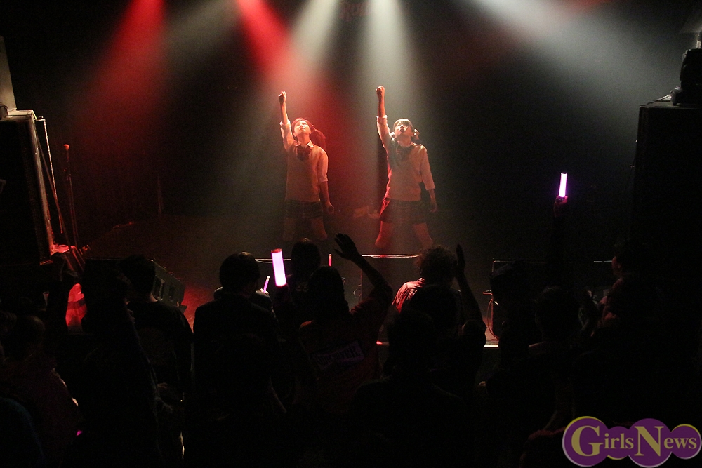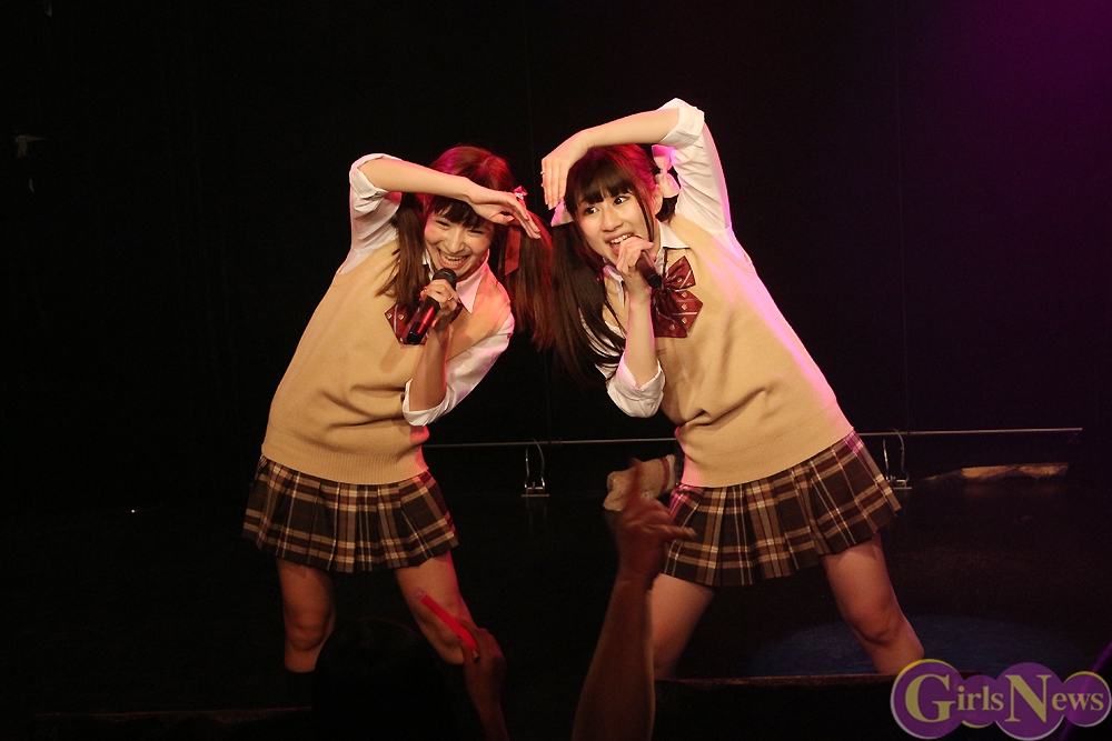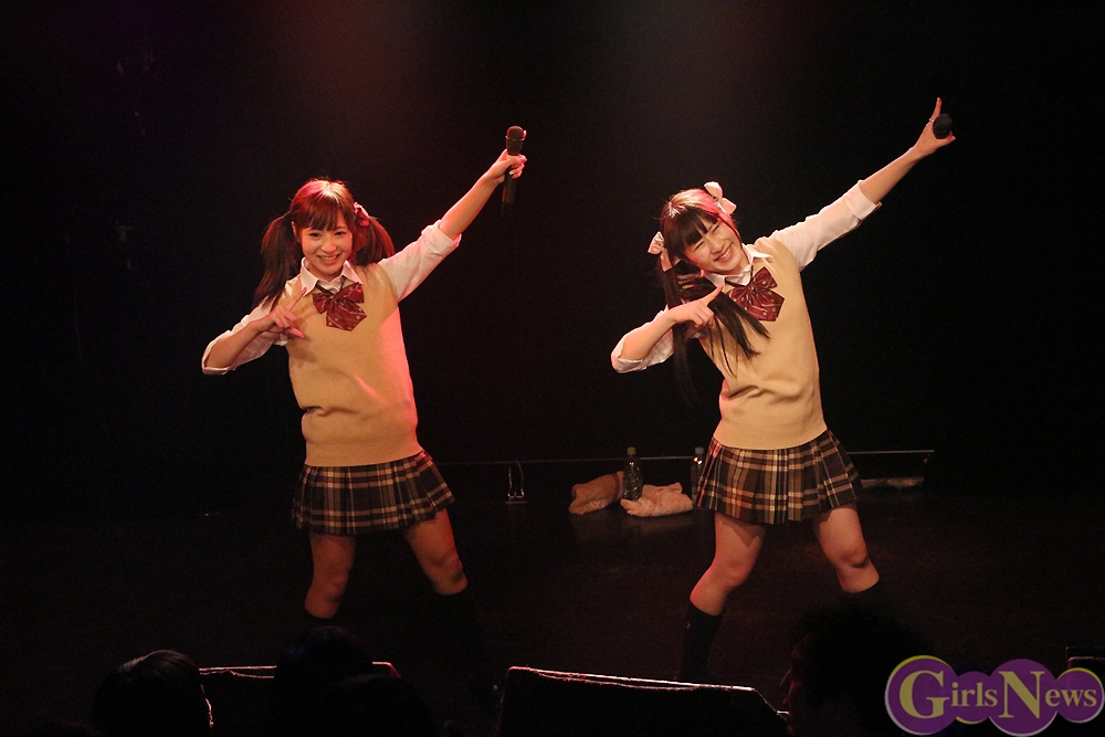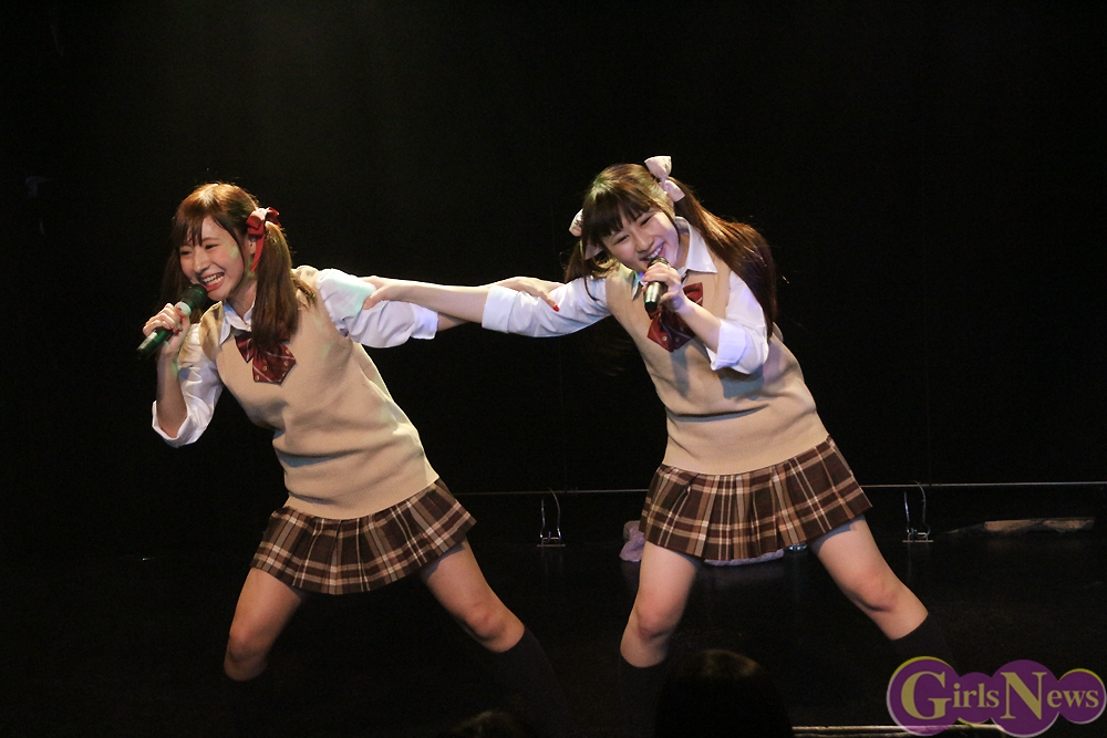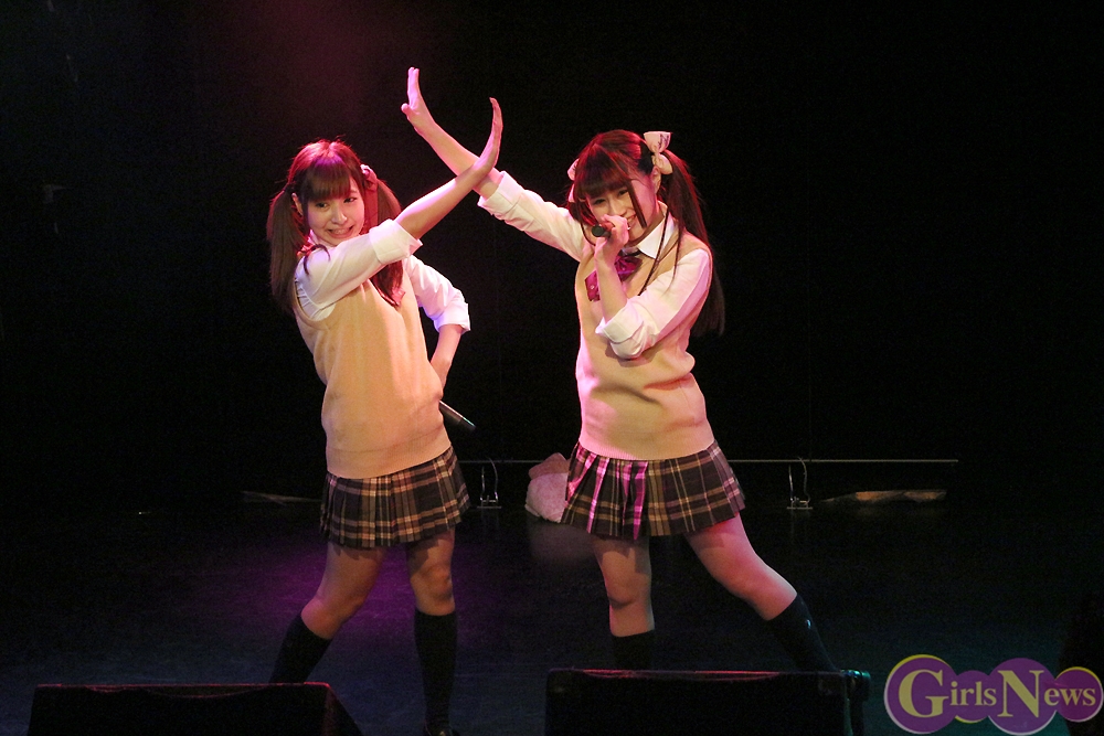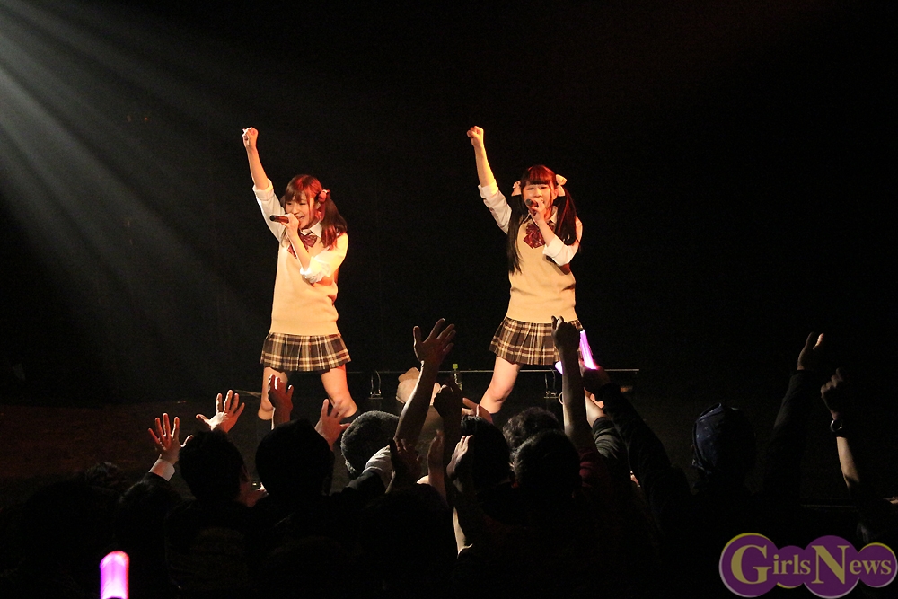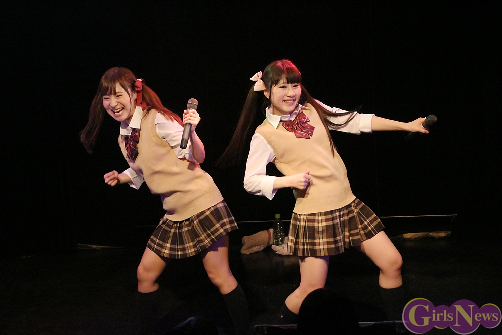 中村彩(あもちゃん)と橋本まみ(まみちょん)の二人は、巷のJKに対抗して、スクールユニフォームの新衣装でステージに立ち、漬かるような汗にまみれながらも全力でステージを飛び跳ね、あっという間と思えるほど楽しいライブで本編を駆け抜けた。