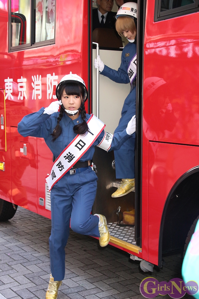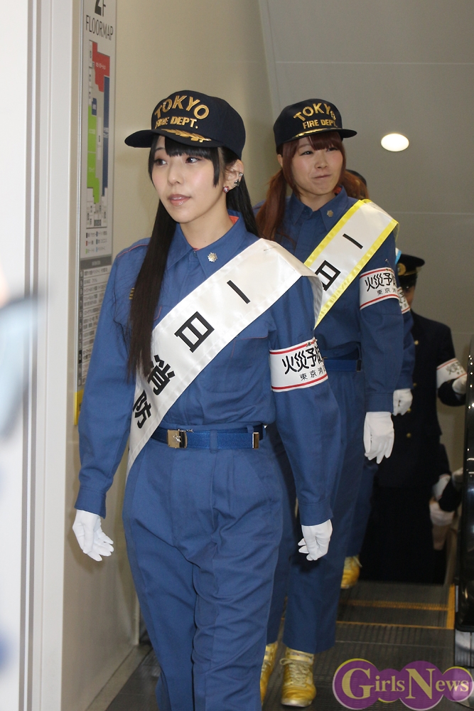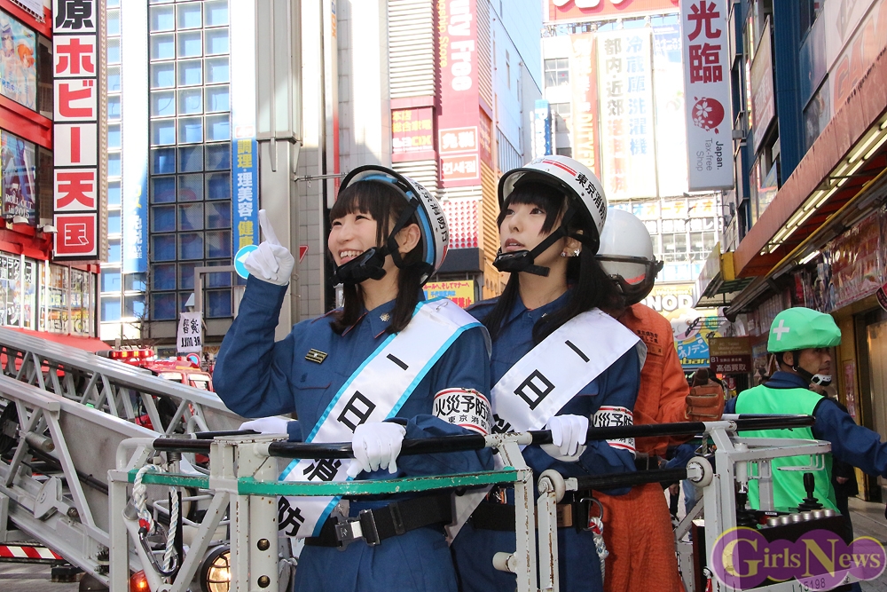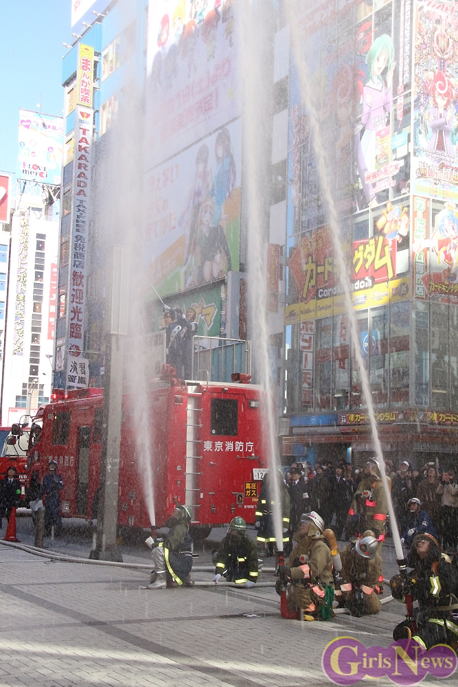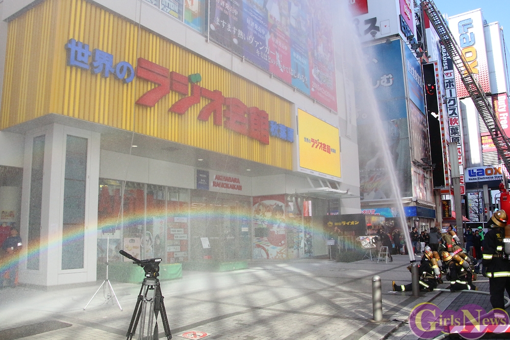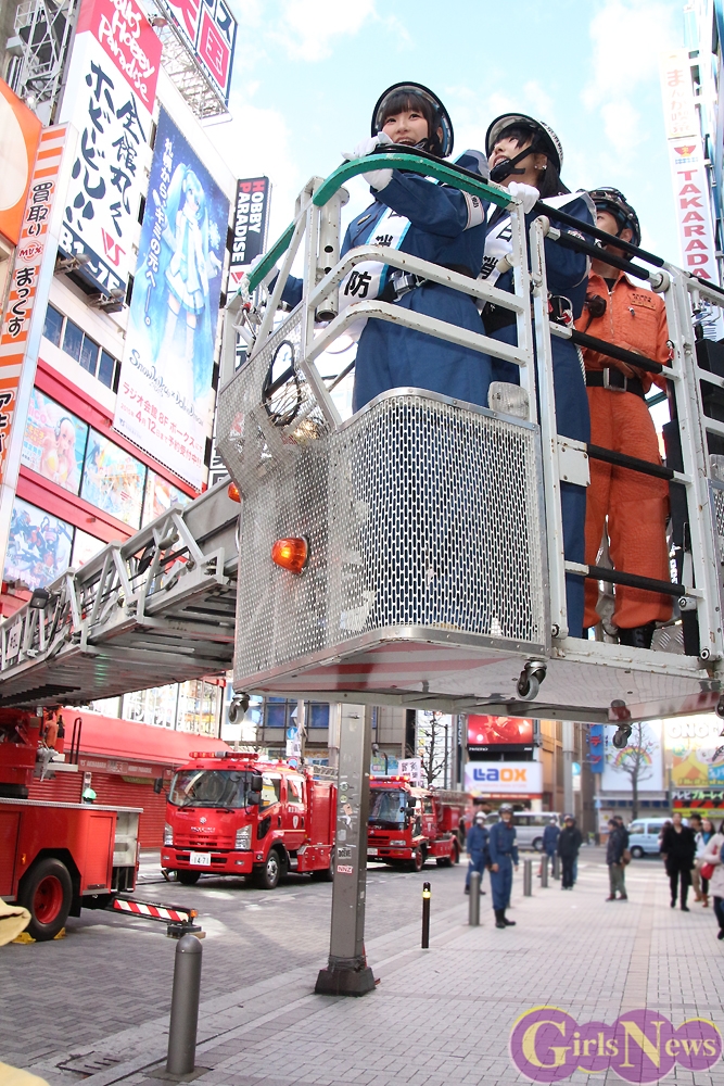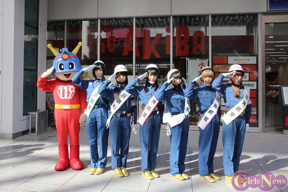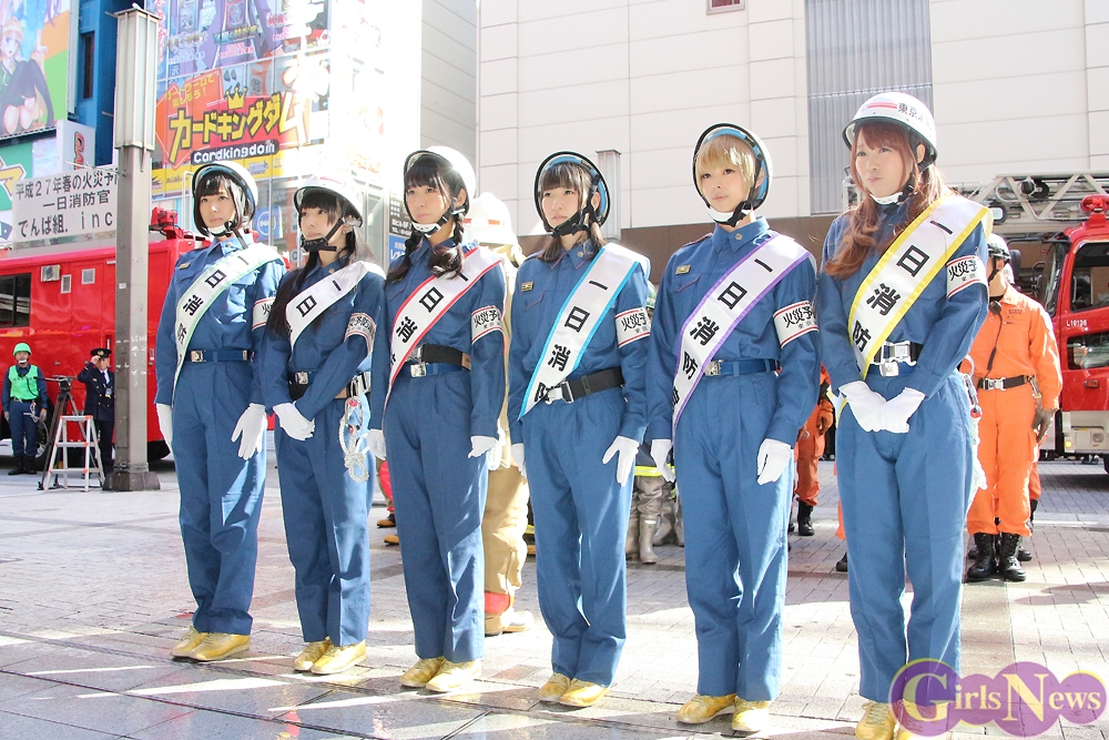 3月10日、秋葉原電気街口のラジオ会館で消防演習が行なわれ、神田消防署長から「一日消防官」に任命されたでんぱ組.incが参加した。