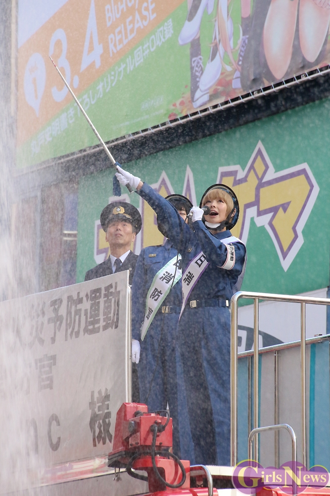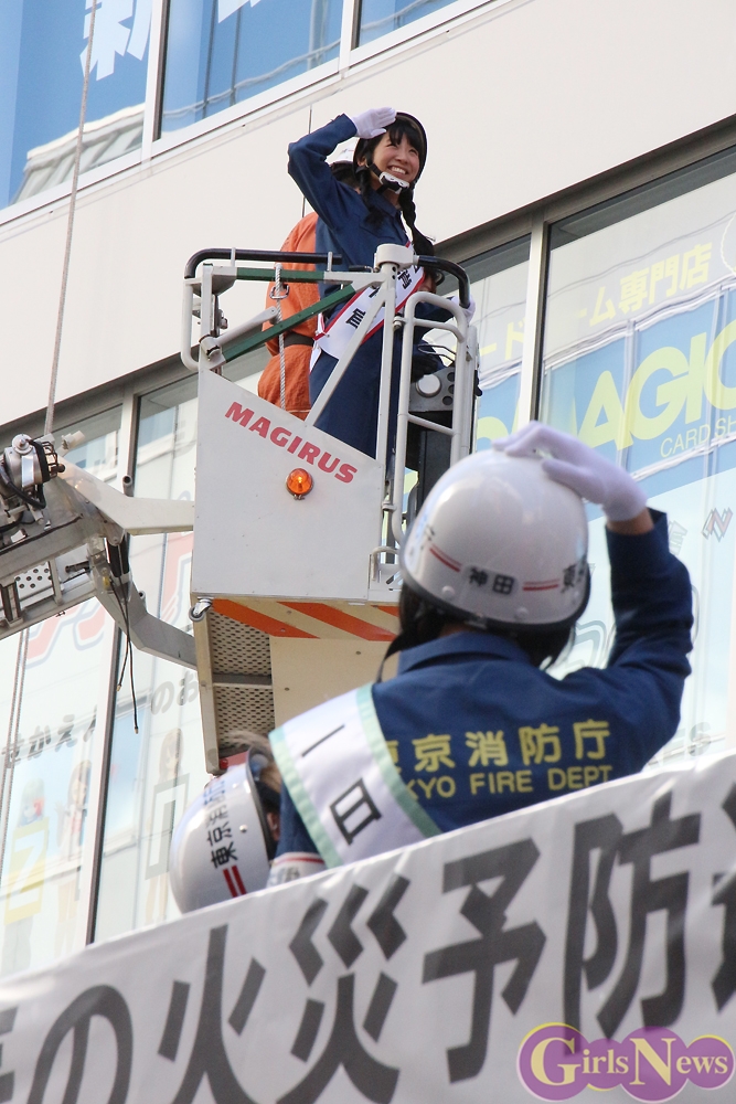 大掛かりな演習に駅前の通行人も関心を持って様子を見守る中、消防車に乗ったでんぱ組.incの6人が登場した。実際に、はしご車に搭乗するなどして消火活動を体験し、館内の立入検査にも同行して防災意識向上に務めた。
