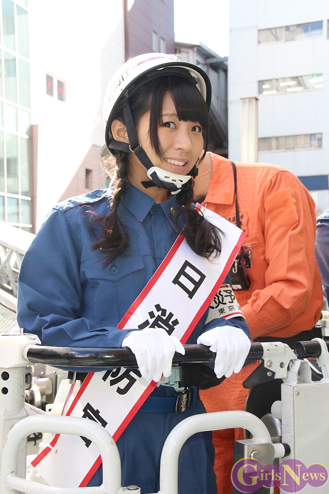 はしご車に乗って、ビル10階の高さに登った成瀬瑛美さんは、「はしごの上がるスピードがすごく早くて、ビックリしました。指示を受けると即座に移動して、迅速な行動で街が守られてるんだと感動しました。でも、ホントはちょっと怖かったです。」と感想を話した。