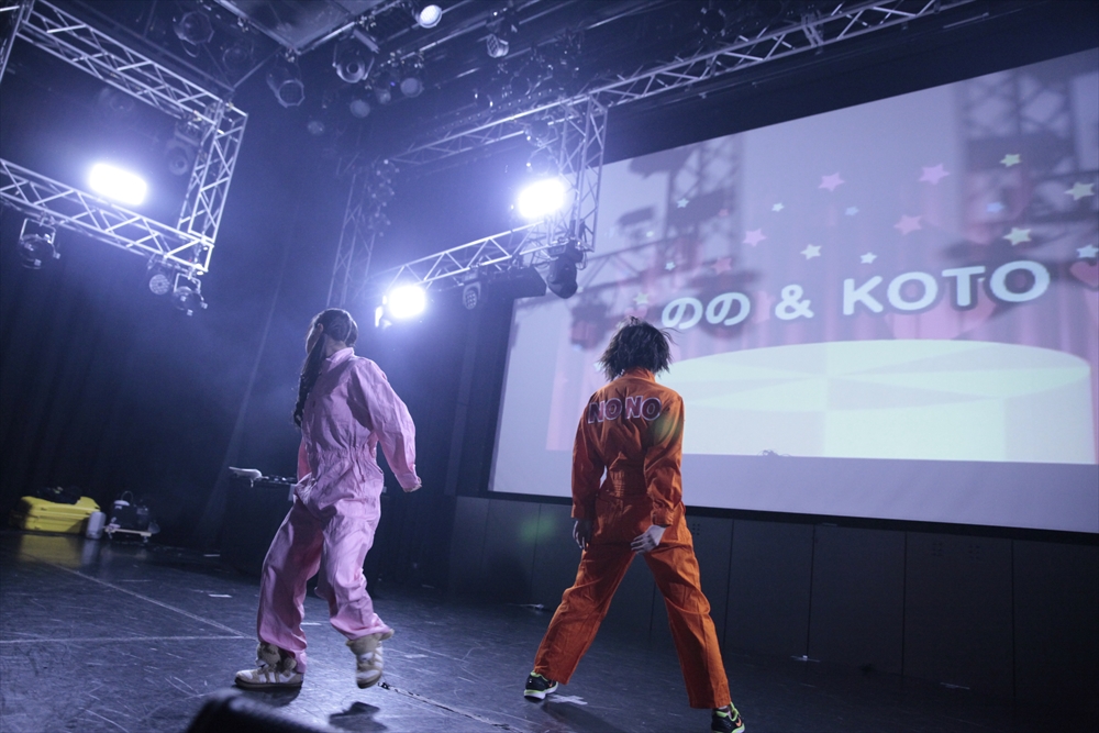 ライブの内容も驚きの連続であった。この日披露した新曲は、“ドキドキパンデミック”、“WORLD END”、“0%になるの”、“教えてドクター”、“DISTANCE”、全部で5曲。コラボでは、DJ西村ひよこを軸にDJオゲレツ(さや)、のの & KOTO、オタクガールズ(藤堂ラナ×らんちゃそ×青葉ひなり(FES☆TIVE)×桃原ひよ(FES☆TIVE))、loveandrop(三嵜みさと(drop)、滝口ひかり(drop)、大場はるか(drop)&ももこ、sena.)と大変豪華なものだった。特にアイドルオタクに扮したオタクガールズではアイドルオタク役の入り込みっぷりに会場の笑いを誘っていた。