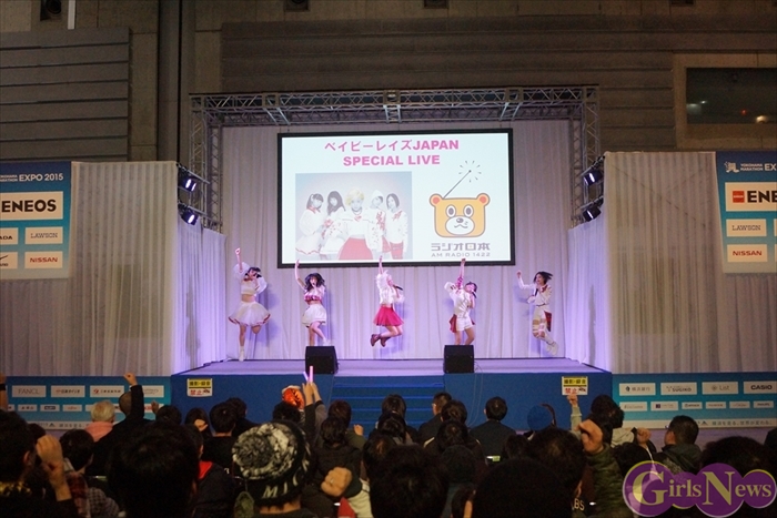 また、イベント後半にはベビレがミニライブを開催。4月1日発売の新曲「栄光サンライズ」を含めた全4曲を披露し、菊地亜美さんが「すごい」と称するダンスと「私まで声が枯れそうになった」という声出しで作った歌声で、公開収録参加者のみならず横浜マラソンへのエントリーを済ませた人々へ圧巻のパフォーマンスを見せた。