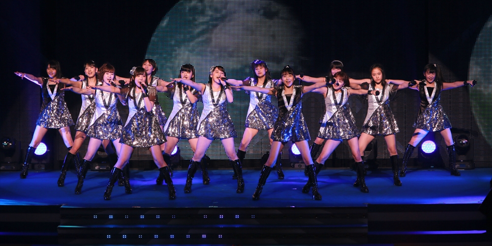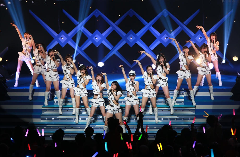 シルバーの衣装に身をまとったメンバーが次々にステージに現れ、オープニングは4月15日に発売するトリプルA面シングル「青春小僧が泣いている」で幕が開けた。曲中に入る独特なブレイクが印象的なクールな楽曲で、彼女たちが得意とするフォーメンションダンスを披露。12期の加入でメンバーが増員し、織り成すダンスも完全に迫力を増している。この中に新人が4人いるとは思えない一体感で、のっけからパワーを見せつけてきた。