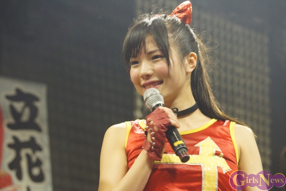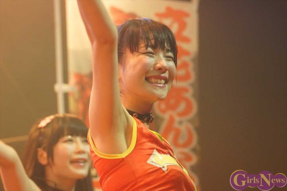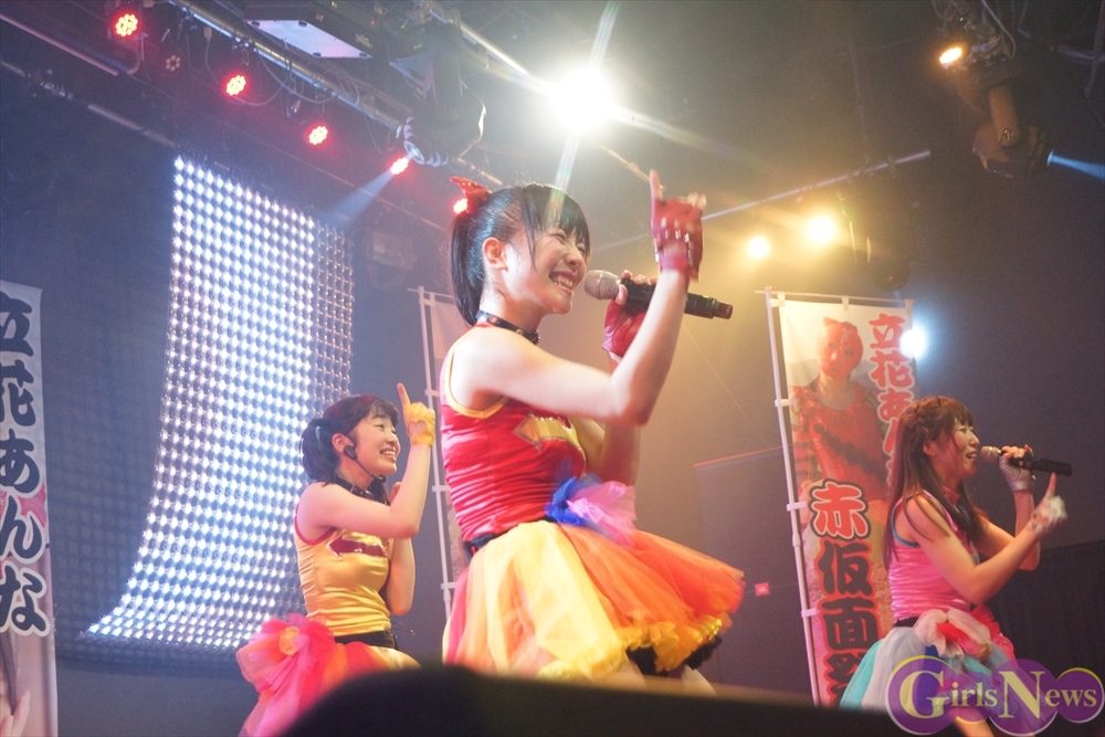 仮面女子の不動のセンターを務める立花あんなさんの生誕祭に相応しく、赤色のサイリュームを持ったファンで埋め尽くされたP.A.R.M.Sに立花あんなさんは「幸せ!」と絶叫。