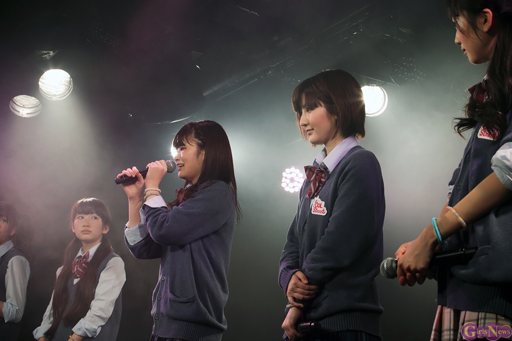 後半には今回のライブの挑戦として、現体制では初となる2曲を披露。6曲目の「オネガイMoonlight」は全身を大きく使ったダンスが、7曲目の「初恋グラフィティ」はメンバーのハーモニーが問われるいずれもハードルの高い曲だが、しっかりと自分たちのものにしてみせた。ワンマンの冠をつけてステージに上がるからには、言い訳はできない。「単独ライブが7期生はみんな初めてで、今日まで練習してきたのを全部出せるようにしたいです」(横尾紗千)という気合が、客席のファンの心へと伝わった。