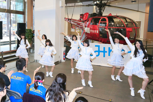 トークコーナーでは「曲も歌詞も、この曲はまさに消防博物館の為にある曲ですね」、消防博物館長の冒頭の挨拶からはじまり、リーダーの西園みすず(19)が「この曲は普段から防災の意識が高まるような歌詞になっていますので、覚えてほしいです」とアピール。