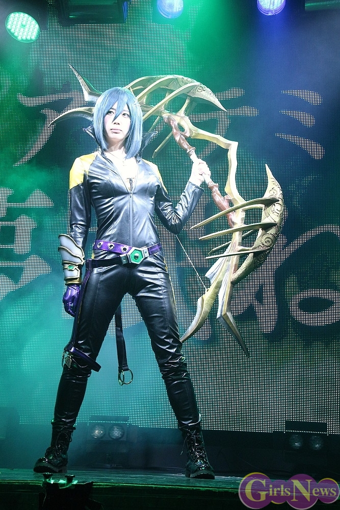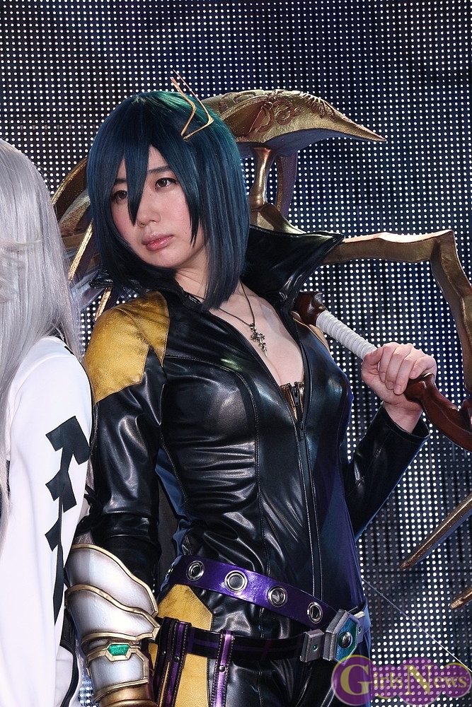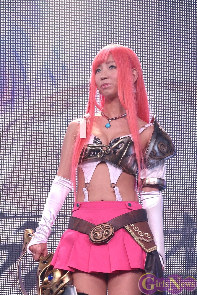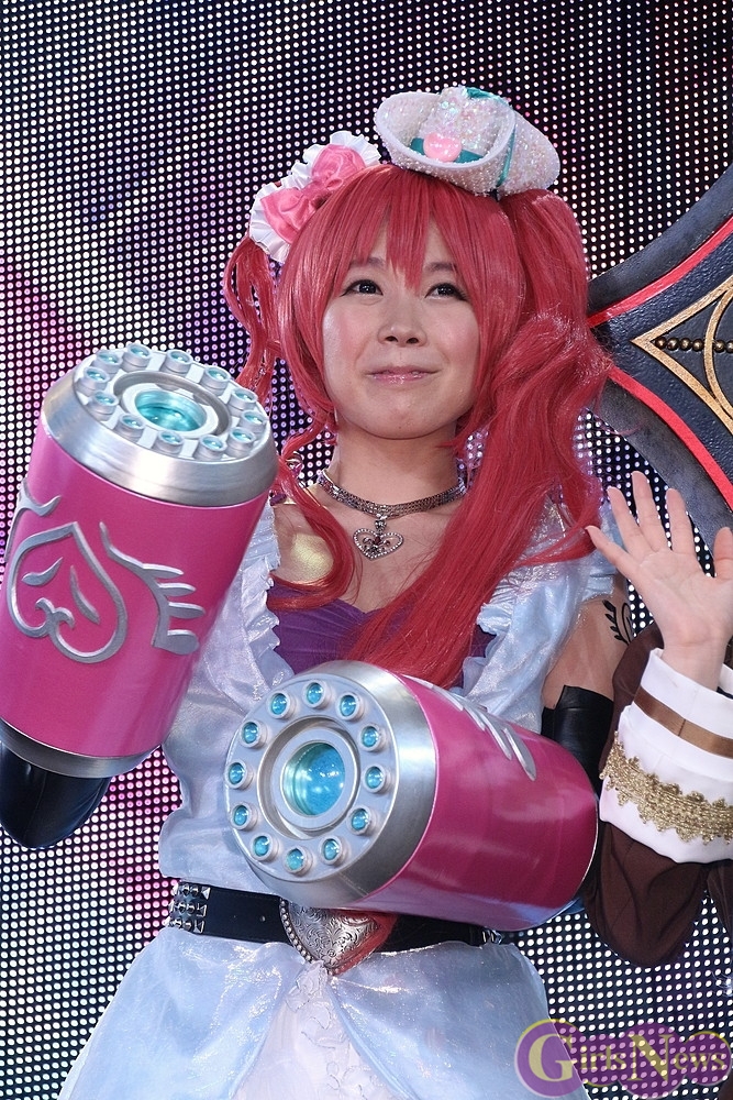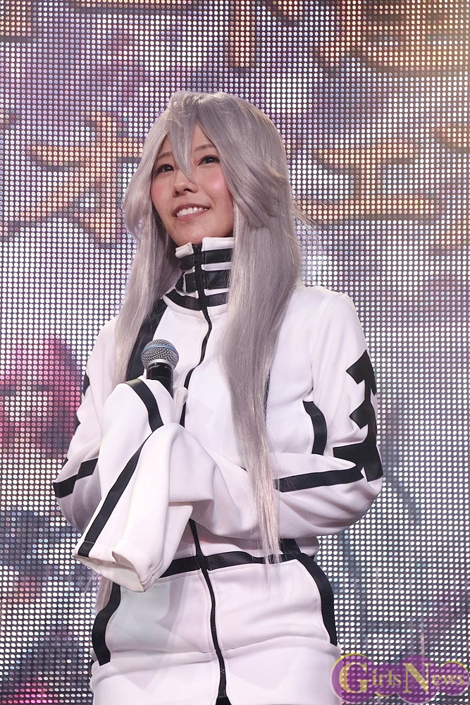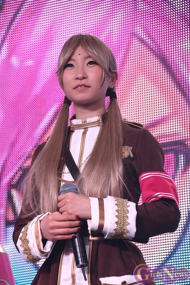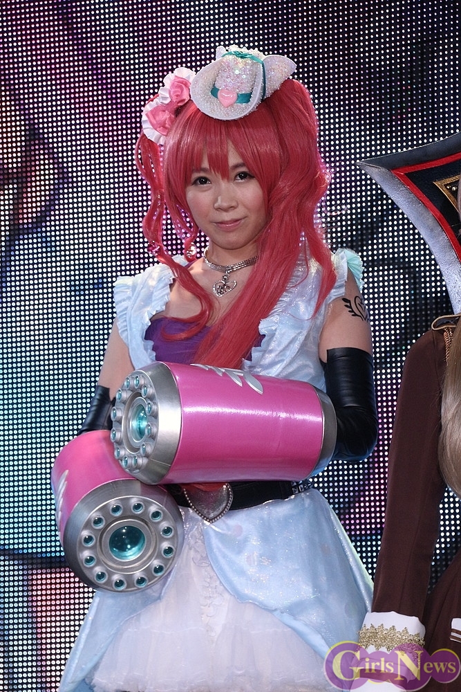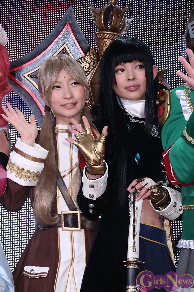 ゲームに登場するキャラクターそのままの完成度の高いコスプレでステージに登場したでんぱ組.inc(成瀬瑛美、藤咲彩音、最上もが、古川未鈴、相沢梨紗、夢眠ねむ)は、大きな武器を手にさっそうとポージングを披露した。