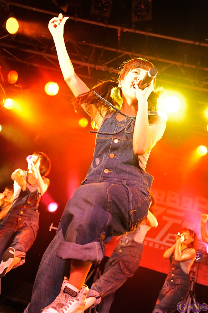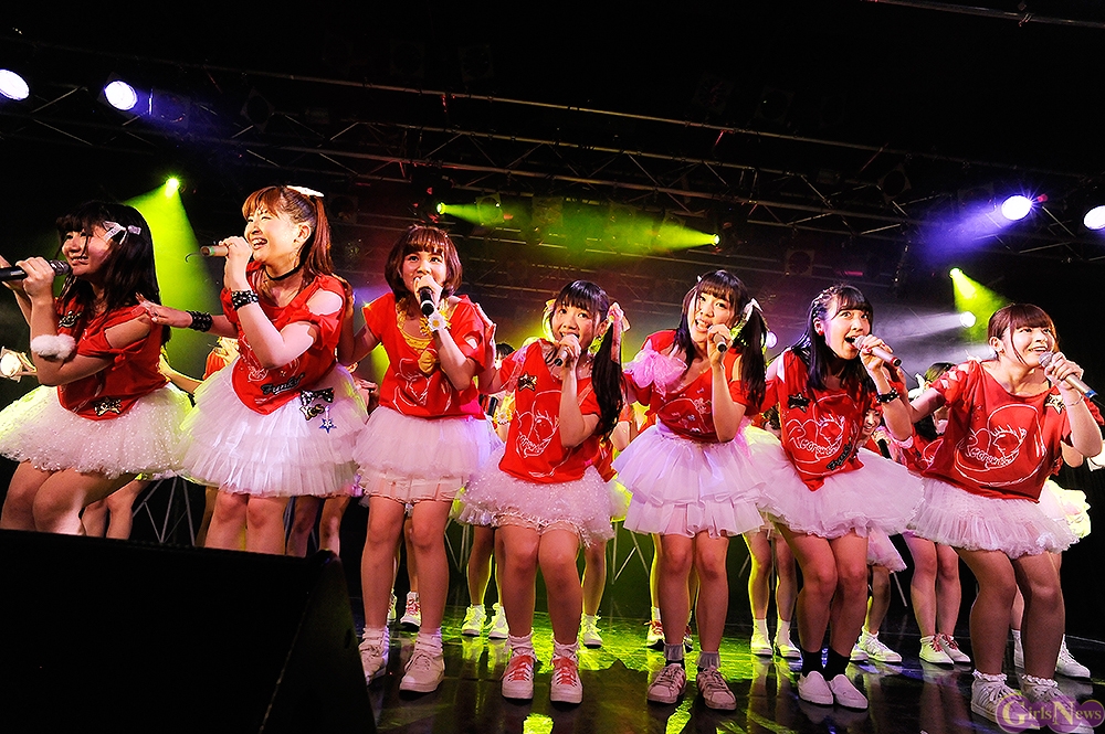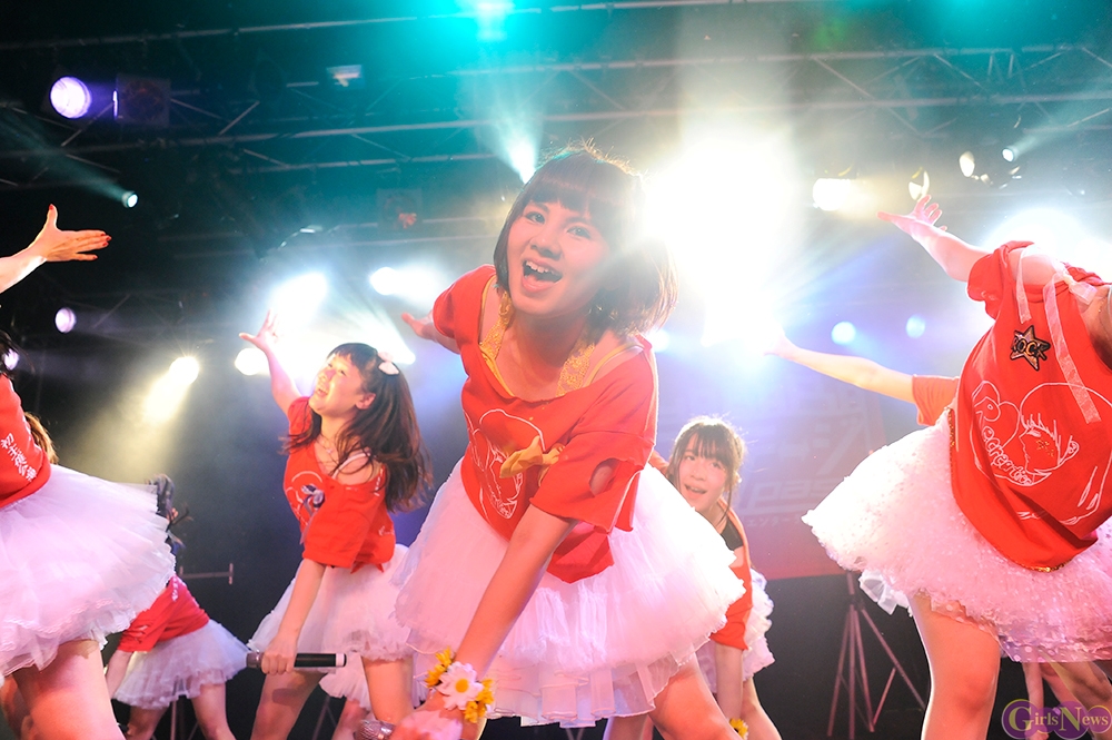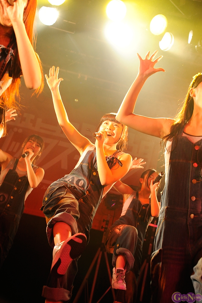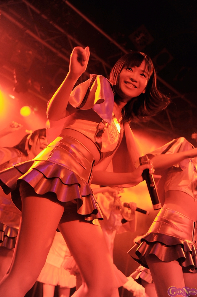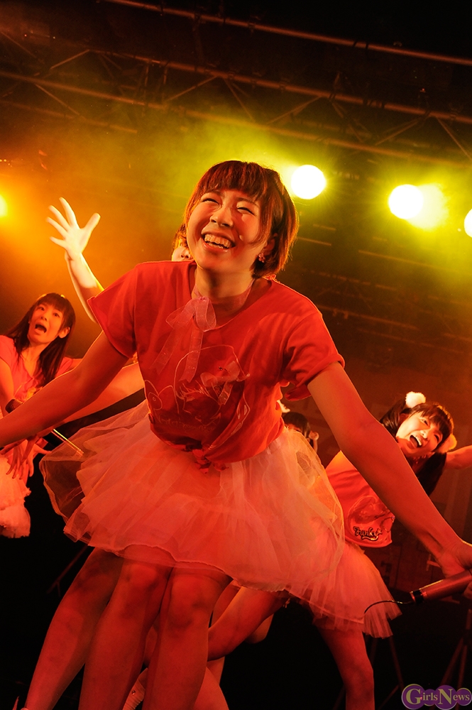 そして、バクステの代表曲のひとつである「美少女黙示録」からライブがスタート。シックで妖艶な世界観を表現した曲だけに、会場をしっとりした大人の魅力が包む。しかし、バクステといえば豊富なアッパーチューンが持ち味のグループ。続く「恋のYes!?No!?」、「ライバルをLOCK ON!」の2曲でフロアのテンションを高め、詰めかけたファンを沸かせた。初のグループワンマンライブに向け、重ねてきた鍛錬。その成果が、序盤からしっかりと歓声という形で実っていた。