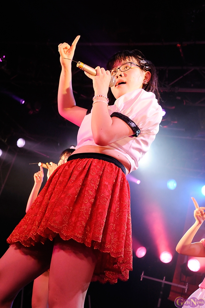 ライブ中盤では、”リスペクトカヴァー”と題して他のアイドルの曲を披露。尊敬するアイドル界の先輩たちを思わせるような衣装は、メンバーの小嶋愛奈さんらが中心となって自ら制作したものだ。ただ、このオリジナル衣装で思わぬハプニングを起こしてしまったのがADなぎささん。前日に試着した際に衣装が小さかったそうで、慌てて作り直した衣装は今度は大きすぎる緊急事態。自ら「襟が大きすぎてガンダムかペリーかと思った」という衣装を少し恥じらいながら纏って登場し、会場からは大きな笑いが湧いた。