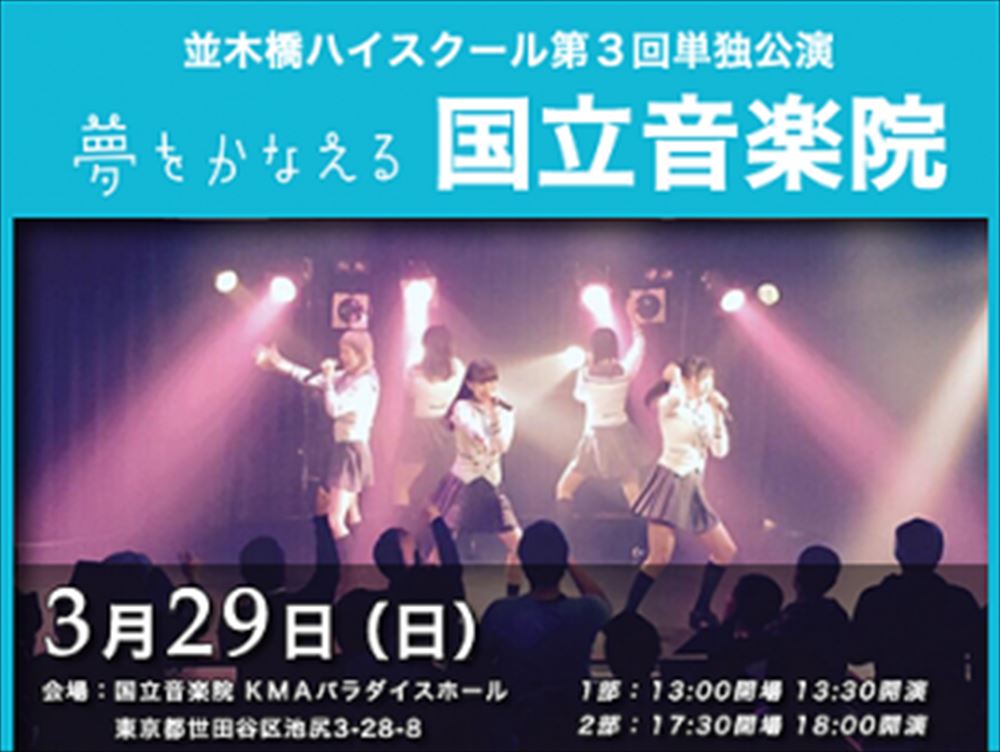 3月29日、ガールズグループ・並木橋Hi-Schoolが第三回となるグループ単独公演を世田谷・国立音楽院 KMAパラダイスホールにて実施する。