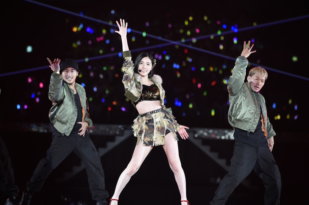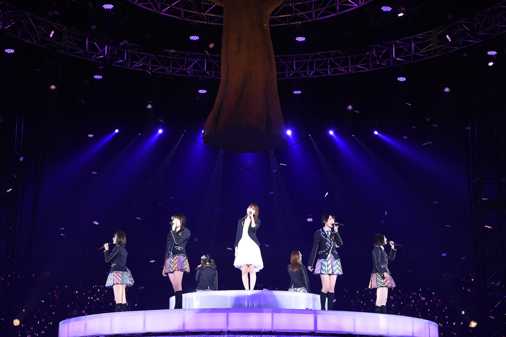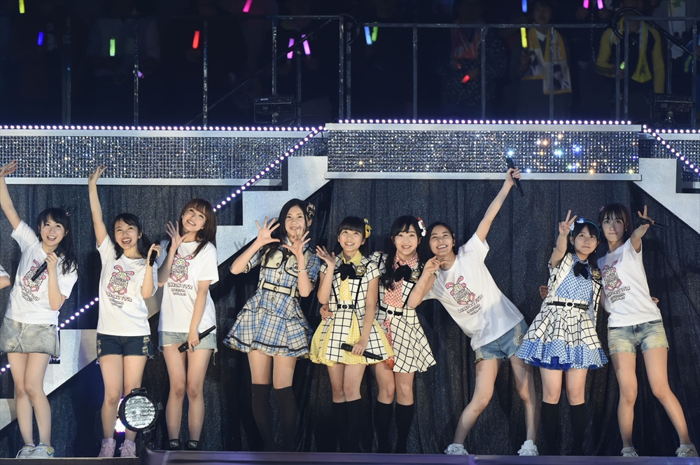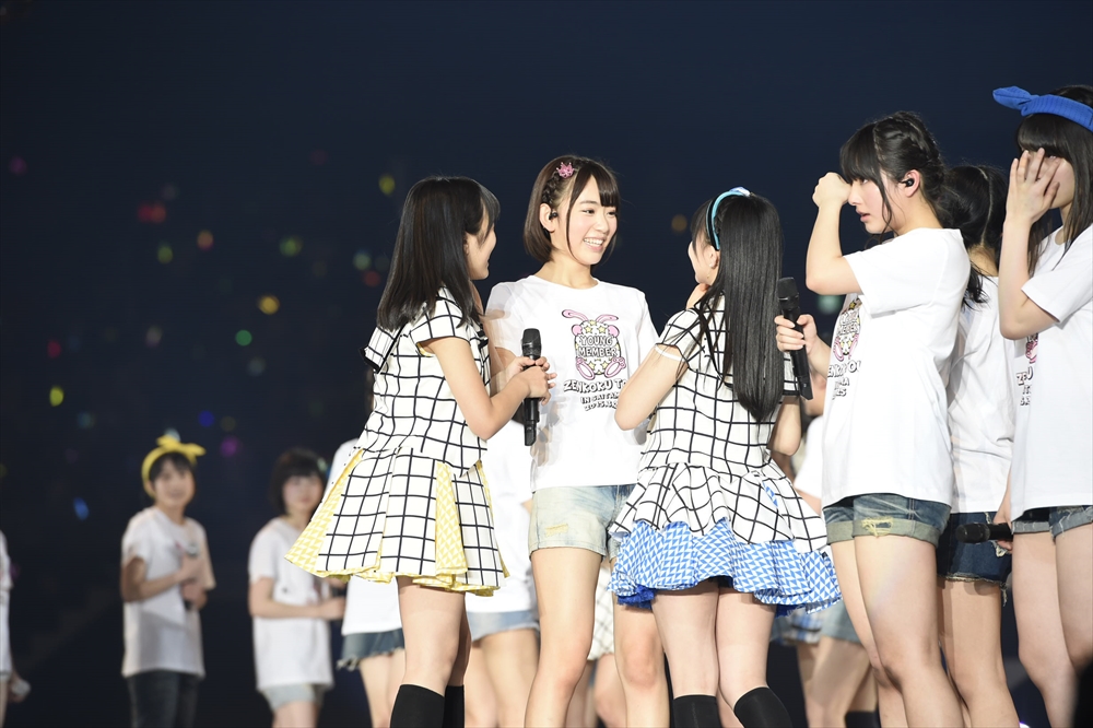中盤では、秋元康総合プロデューサーの755でのつぶやきの通り、小嶋陽菜が自身の写真集を手にステージ上を練り歩く姿も。その後「桜の木になろう」では小嶋陽菜が再度登場し、ヤングメンバーと共にしっとりと歌い上げ、「ヤングのみなさんもファンの皆さんも楽しんでください!」と笑顔で呼びかけ会場を盛り上げました。