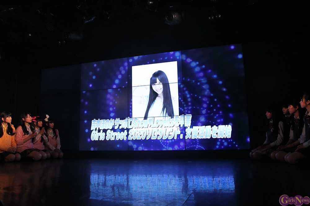 更に、イベント終盤には再び大きなサプライズが。スノラビとして活躍する吉本ほのかさんが、この日限りでのスノラビからの卒業、ソロタレント・女優として活動していくことを電撃発表した。さらに、同じスノラビからは木戸口桜子さんも、4月より活動拠点を東京に移すことが発表された。吉本ほのかさんは今後女優を目指すということで「ドラマ・テレビの画面でお会いできるように」とファンと再開を誓った。なお、わ→すた結成および卒業生によるスト生の人数変更に伴い、今年7月12日のGirls Street EXPOでの最終審査にて8期生が加入するまではe-Street’15(イーストリート・フィフティーン)・w-Street’15(ウエストリート・フィフティーン)の2チーム体制で活動を継続させていく。また、メンバー3人がスト生を離れることになるhanarichuは新リーダーを託された吉本ほのかさんが「hanarichuはあります!」と述べたことから、活動継続が予想される。